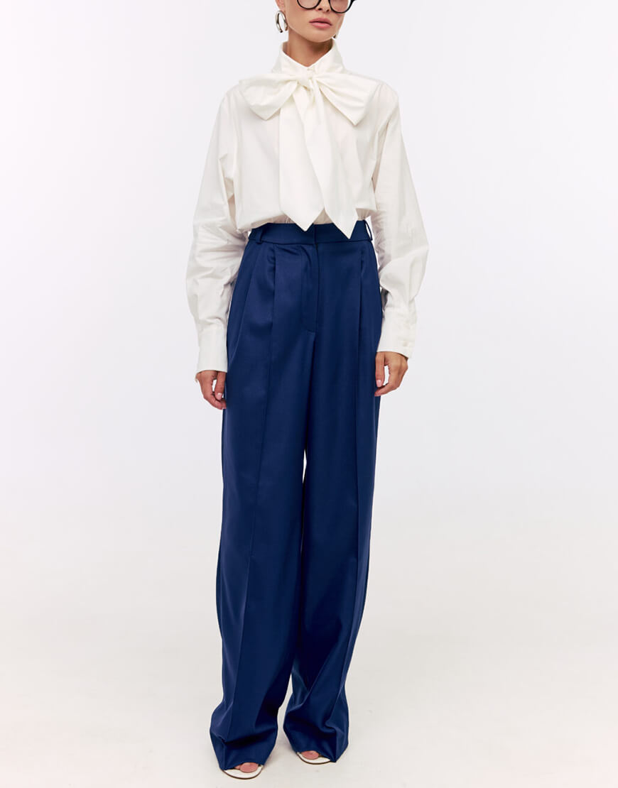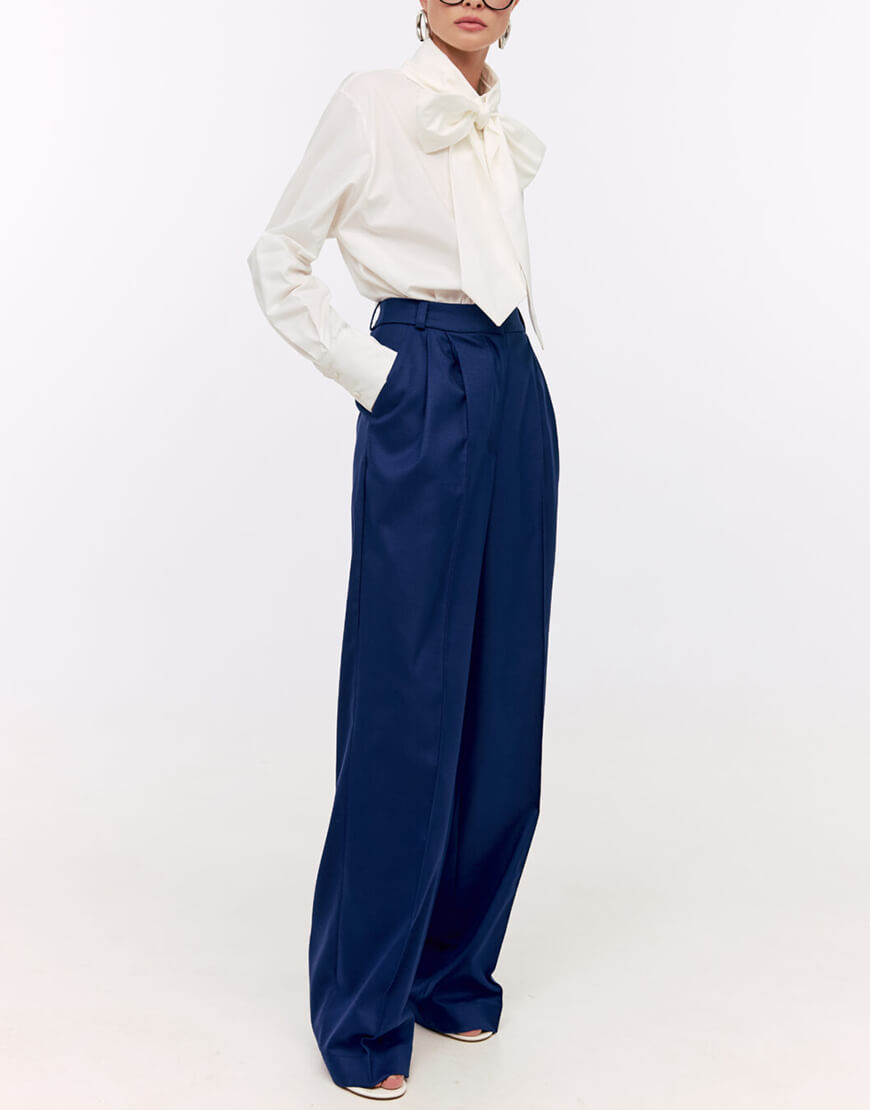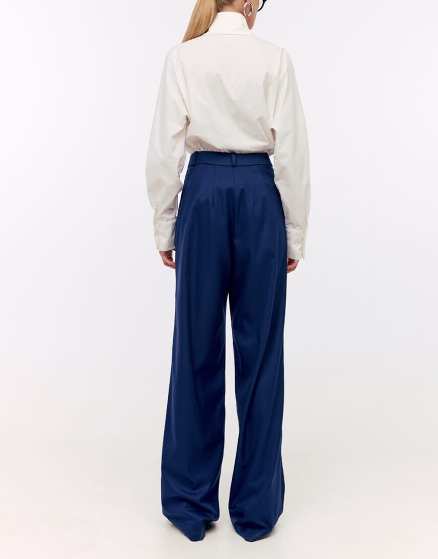 Доставка впродовж 2-10 робочих днівШтани-палаццо з подвійними защіпами та карманами по бокам. Висока лінія талії та широкий пояс підкреслюють силует. Широкий манжет по низу штанів. Довжина штанів 114 см.