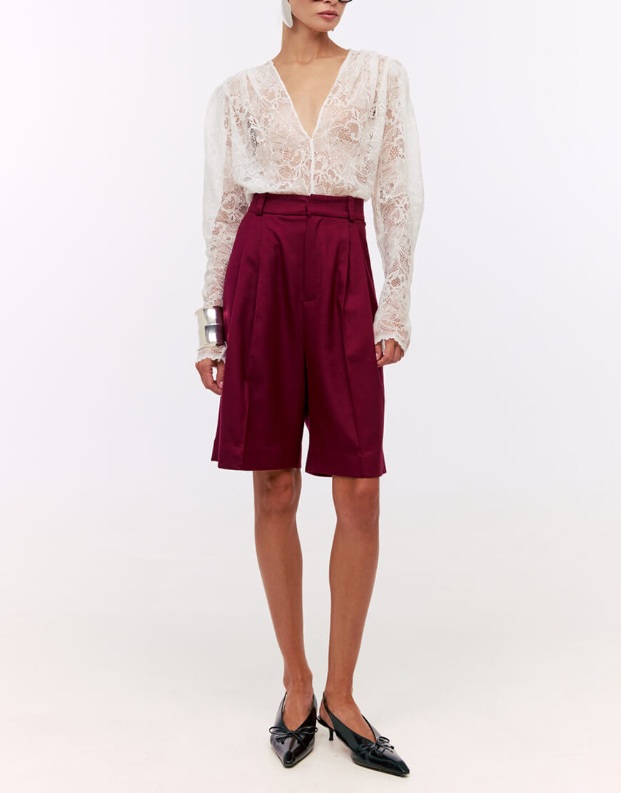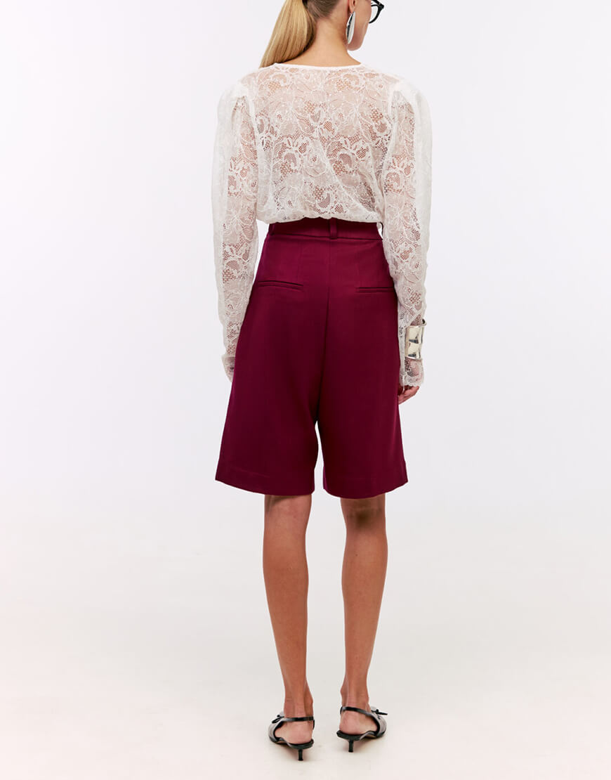 Доставка впродовж 2-10 робочих днівШорти-бермуди з подвійними защіпами та карманами по бокам. Висока лінія талії та широкий пояс підкреслюють силует. Широкий манжет по низу. Довжина шортів 59 см.