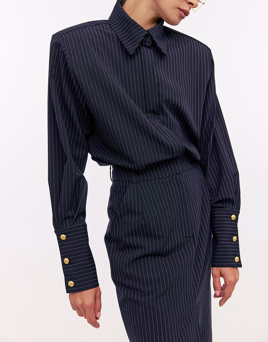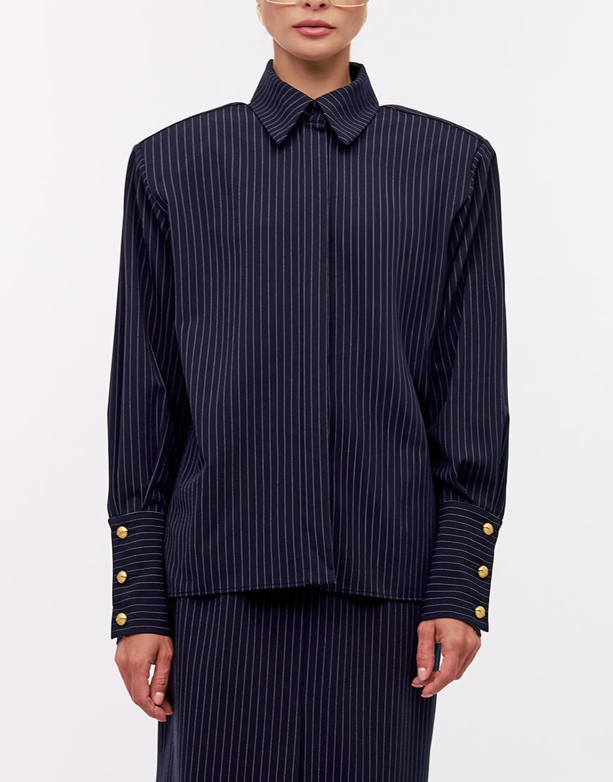 Сорочка з м’якої вовняної тканини об’ємного крою з акцентними плечима. Застібається на гудзики. Преміальна технологія виконання з усіма закритими швами. Довжина сорочки 63см.