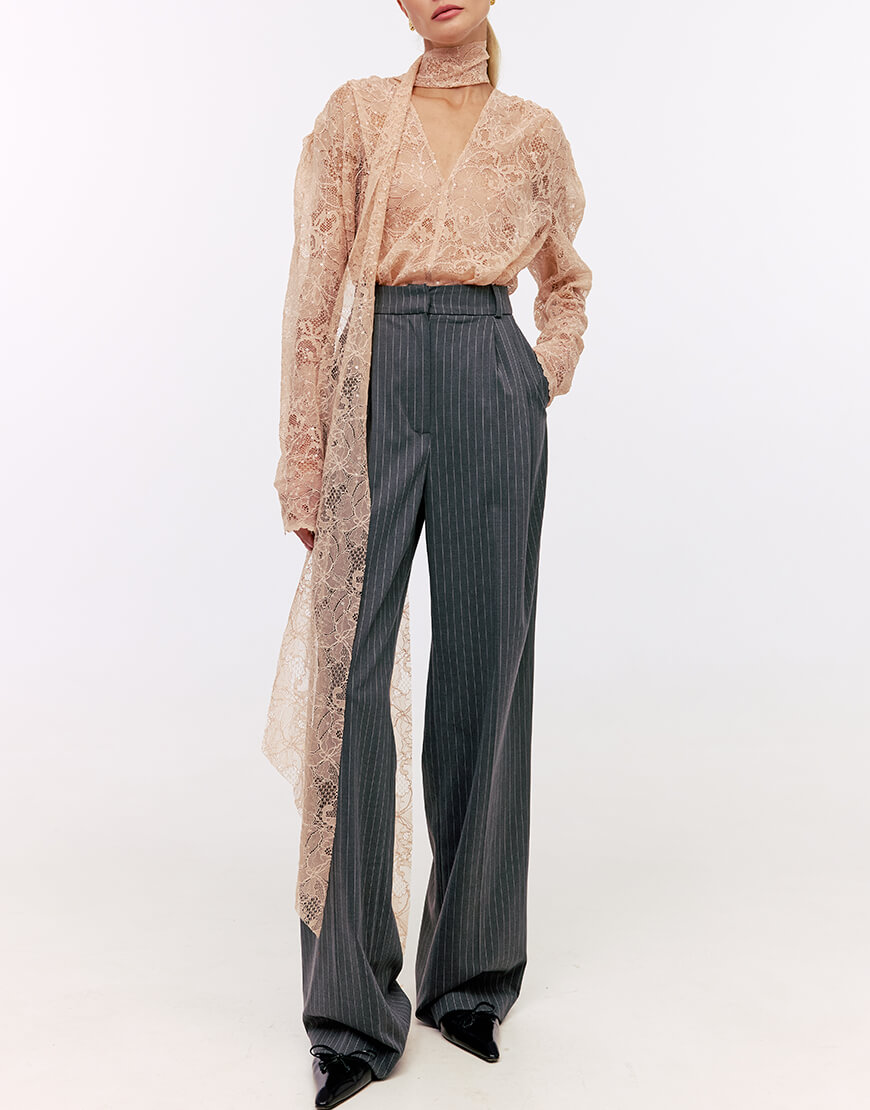 Доставка впродовж 2-10 робочих днівШтани-палаццо з подвійними защіпами та карманами по бокам. Висока лінія талії та широкий пояс підкреслюють силует. Широкий манжет по низу штанів.