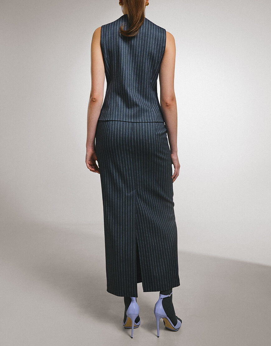 Пряма спідниця максі зі шліцою по спинці. Середня лінія талії. Застібається спереду на блискавку. Довжина спідниці 99 см.