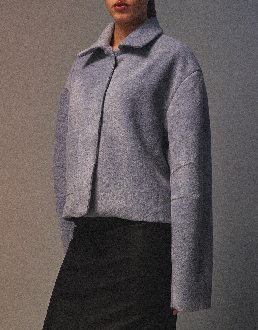 Теплий вкорочений жакет однобортного крою, виконаний з пальтової тканини на підкладці. Жакет застібається на потаємні металеві кнопки. Надзвичайно теплий та універсальний.