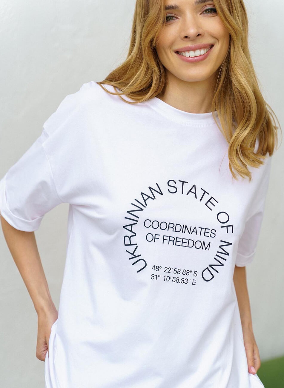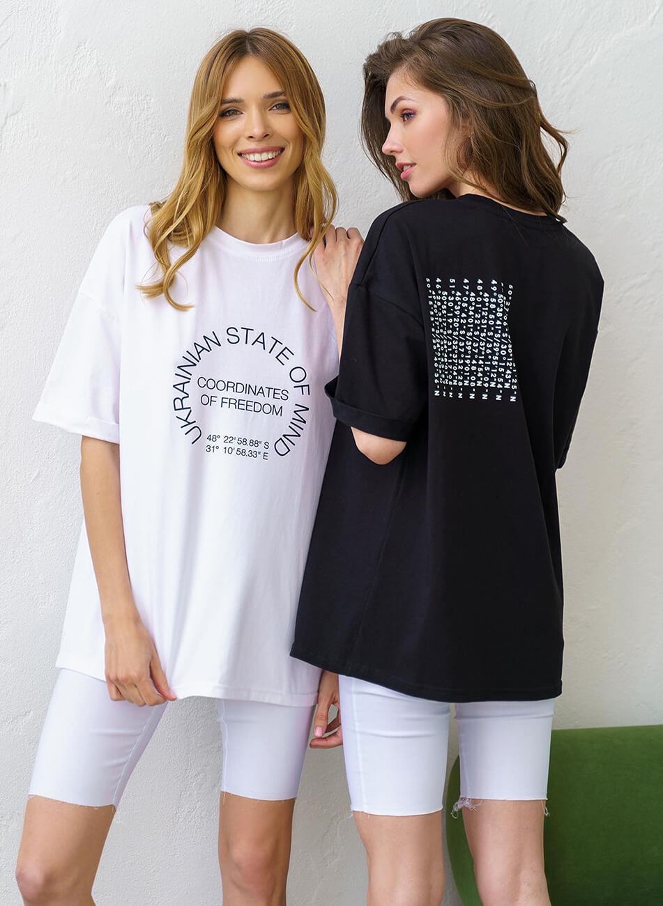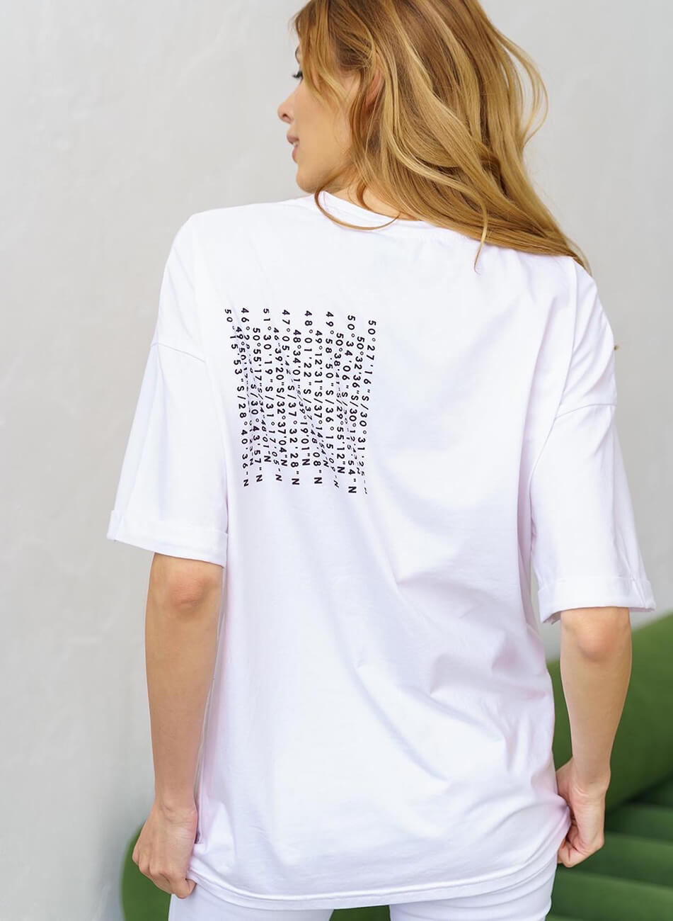 Бавовняна об’ємна футболка з авторським принтом.