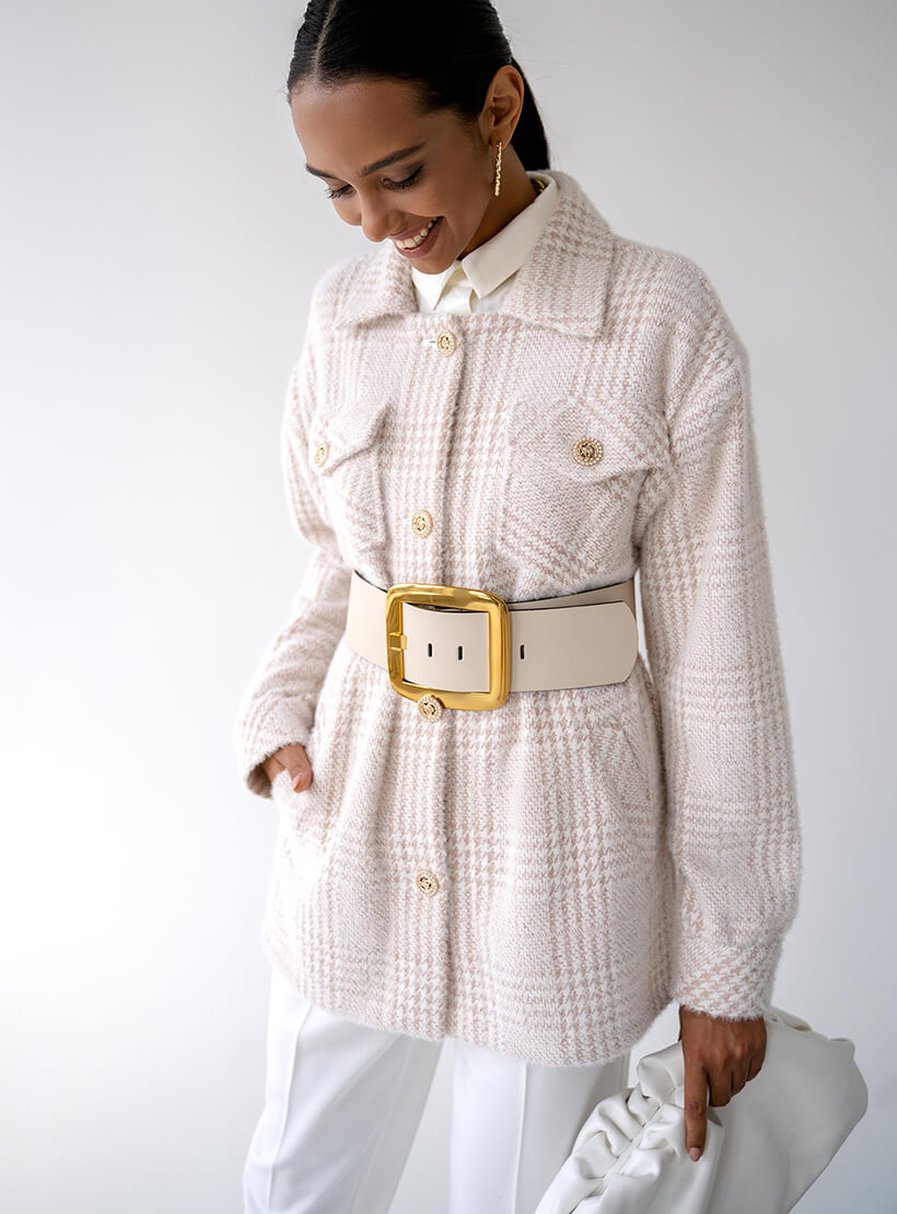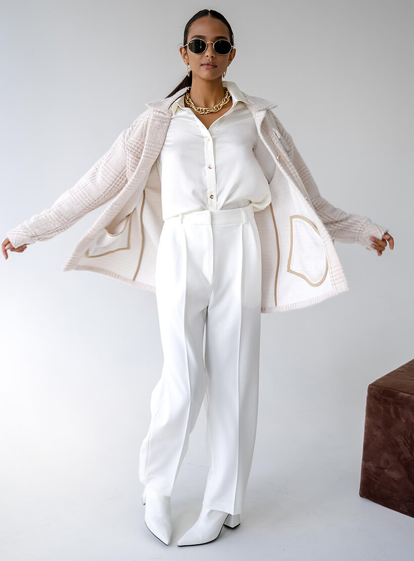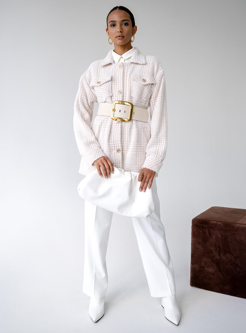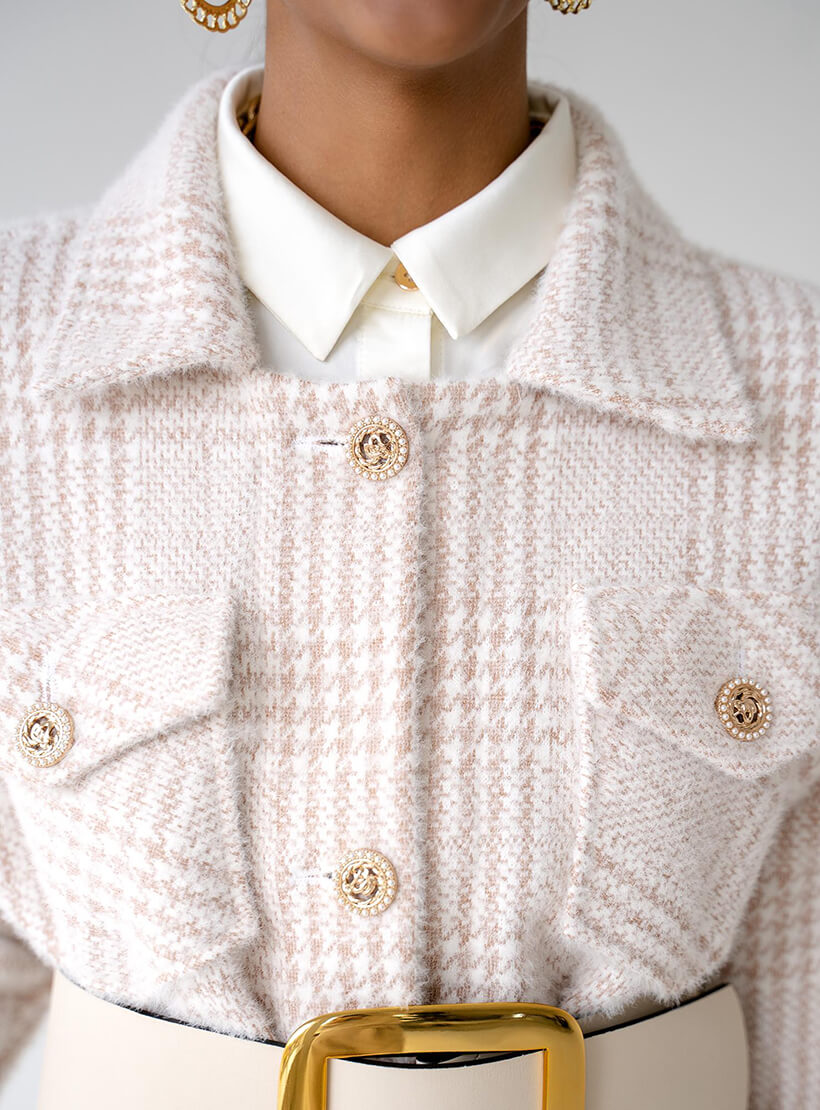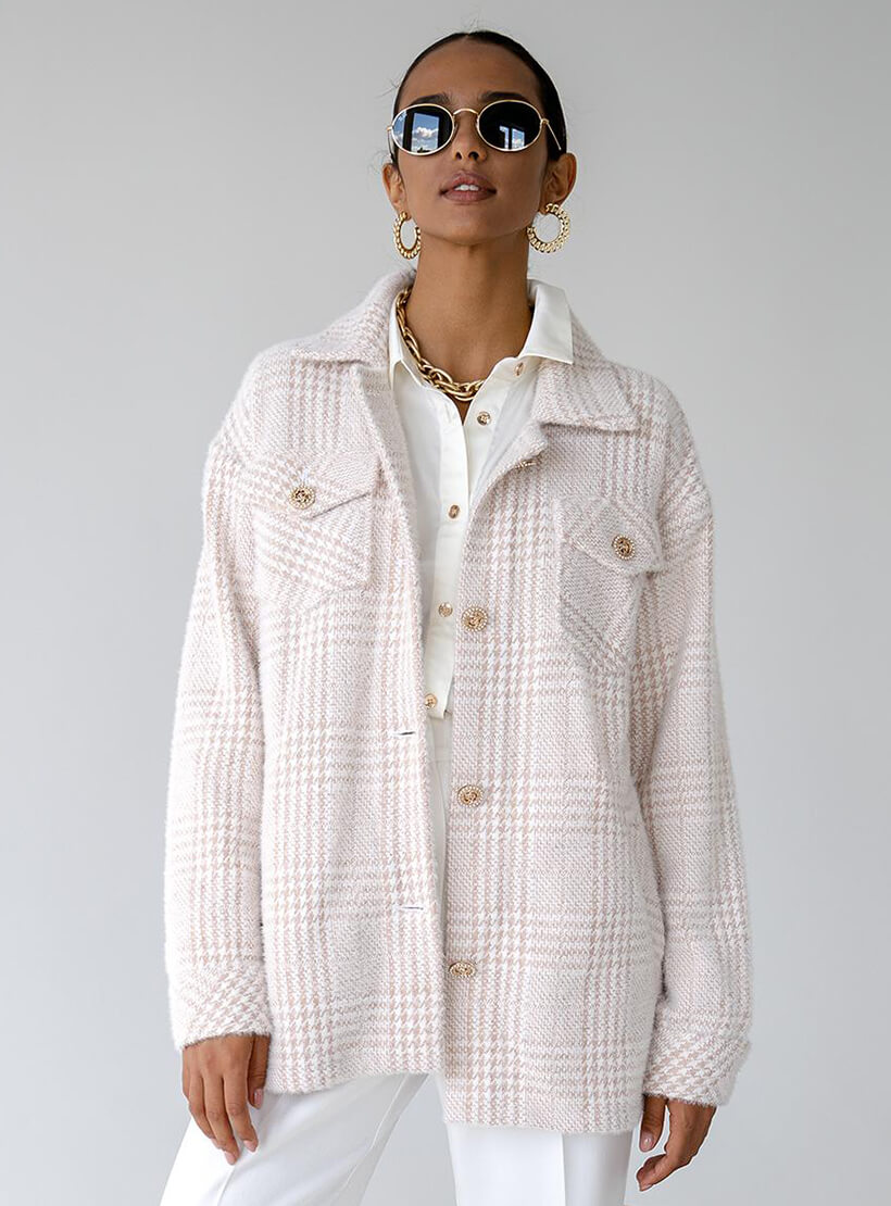 Тепла подовжена сорочка-курточка. Виконана з м’якої тканини. Кишені з боків і накладні на грудях.