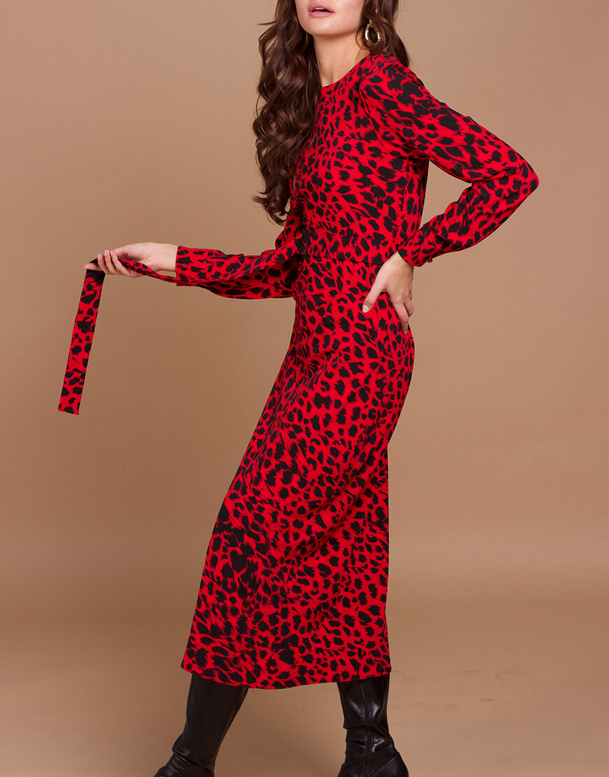 Стильна нео-класика. Сукня-міді прилягаючого силуету. Застібається ззаду на декоративний ґудзик.