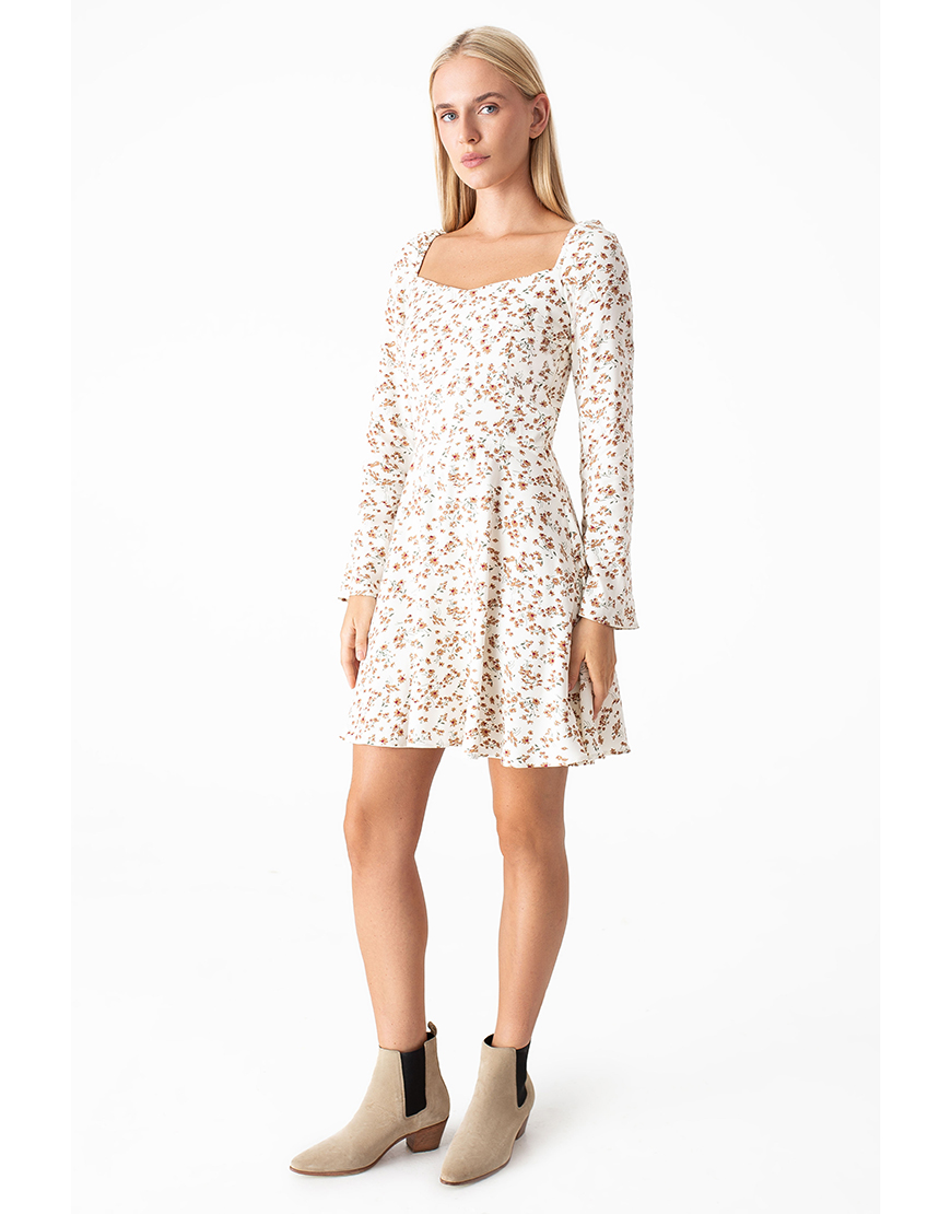 Сукня в довжині міні з декольте. Відмінно поєднується з будь-яким взуттям: підбори або плоский хід – вибір за Вами!