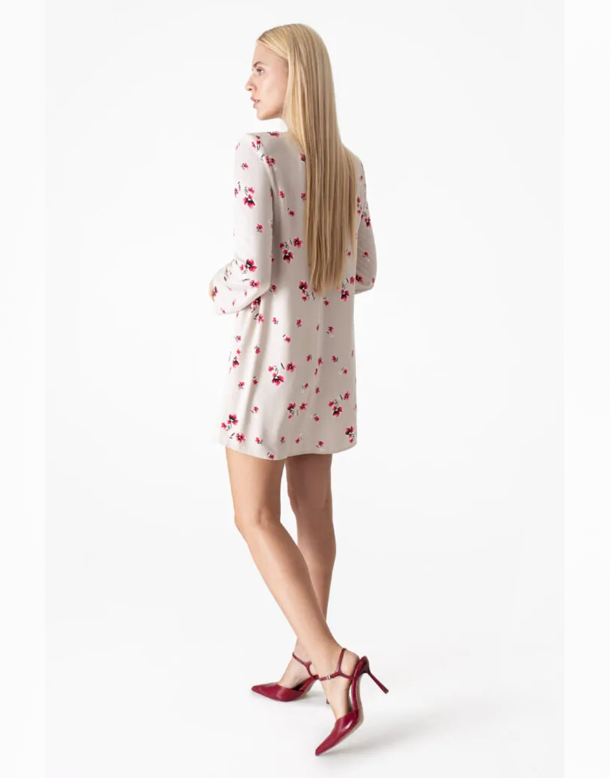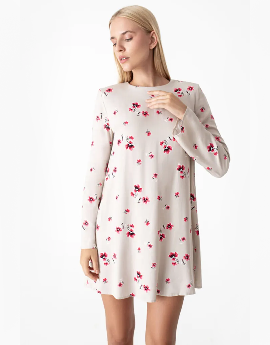 Сукня міні у квітковий принт бежева