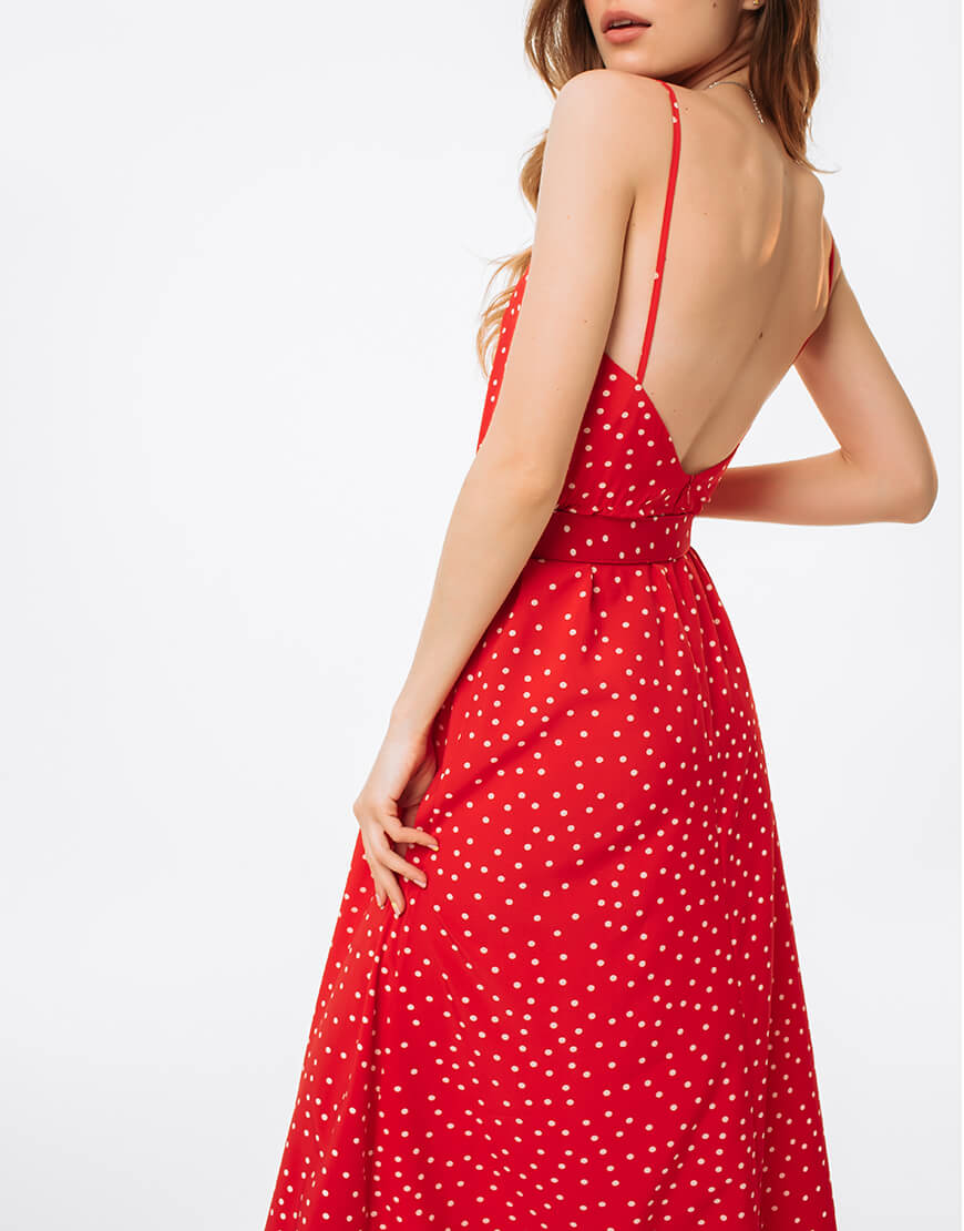 Доставка впродовж 2-5 робочих днівЛетюча сукняз розрізом, на тонких бретелях, з відкритою спиною, декороване ременем. Виконано з матеріалу soft у принт “polka dot”: дихаючий матеріал ідеально підходить для спекотного літа. Підійде для повсякденних і вечірніх образів.