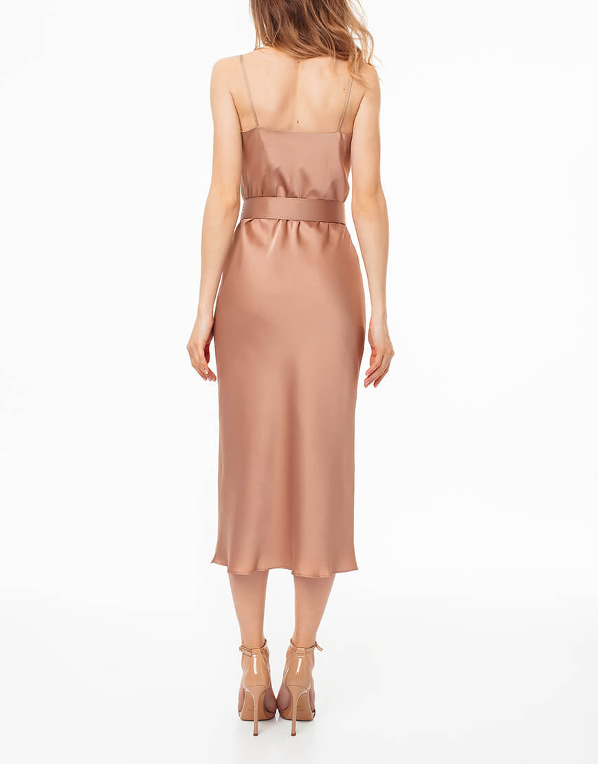 Сукня-комбінація зі штучного шовку “Армані” має струмливий силует і магнетичний ефект для оточення. Декорована поясом. Простота й елегантність цієї сукні – запорука Вашого ідеального образу. Відмінно поєднується з різним взуттям: від кед до витончених човників.