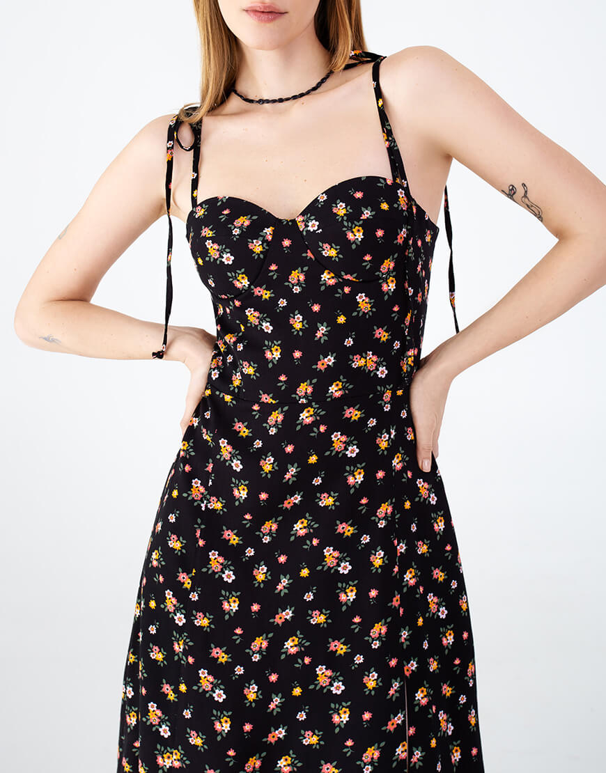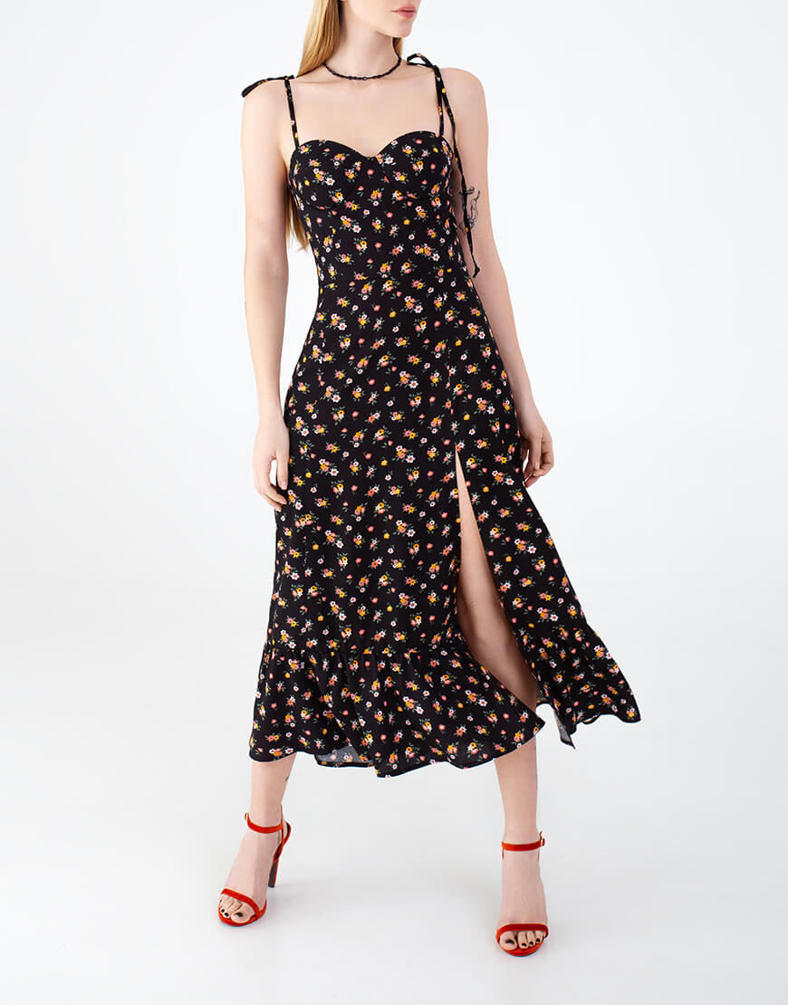 Доставка впродовж 2-5 робочих днівСукня в довжині максі з розрізом, вшиті чашки. Відмінно поєднується з будь-яким взуттям: каблук або плоский хід – вибір за Вами!