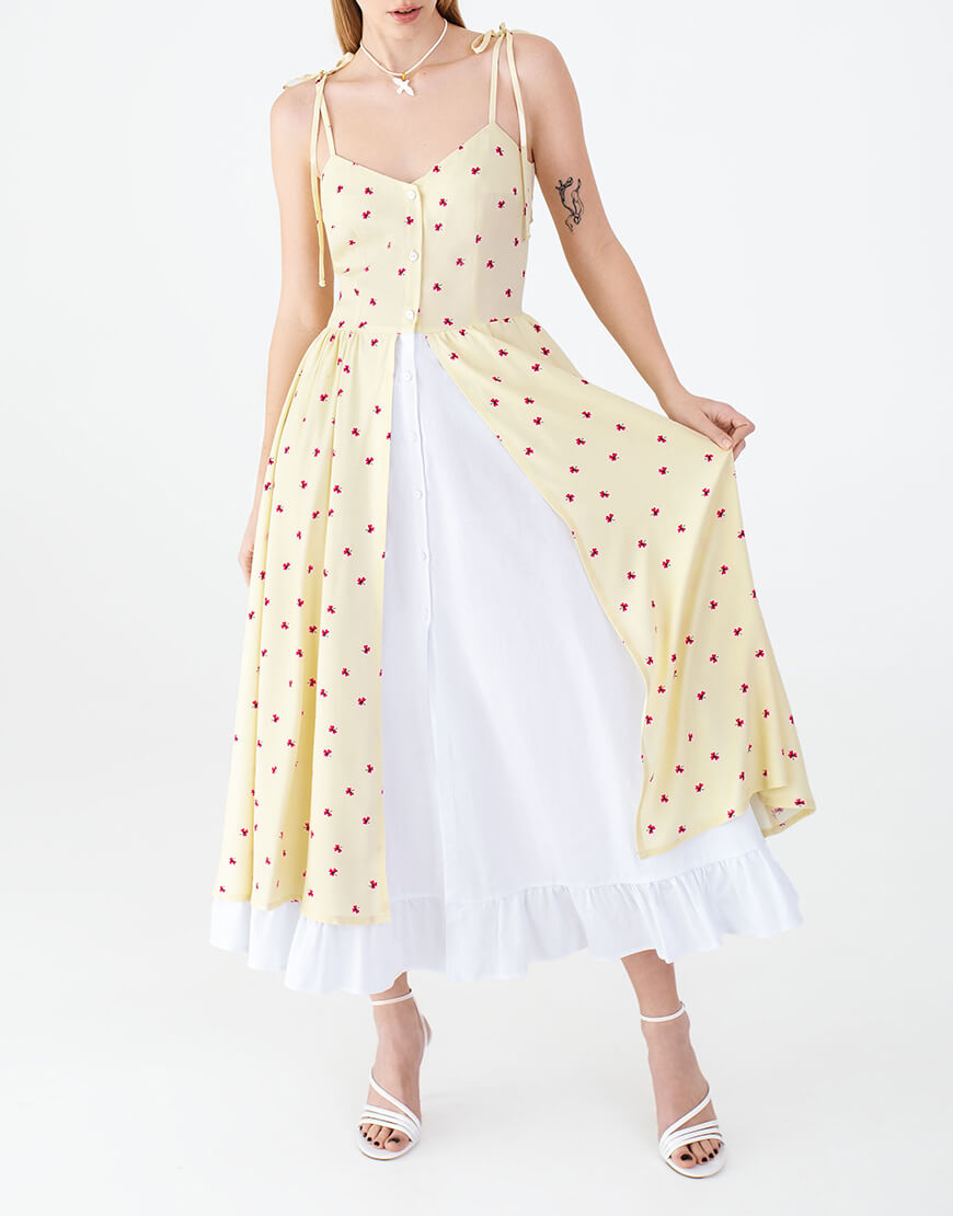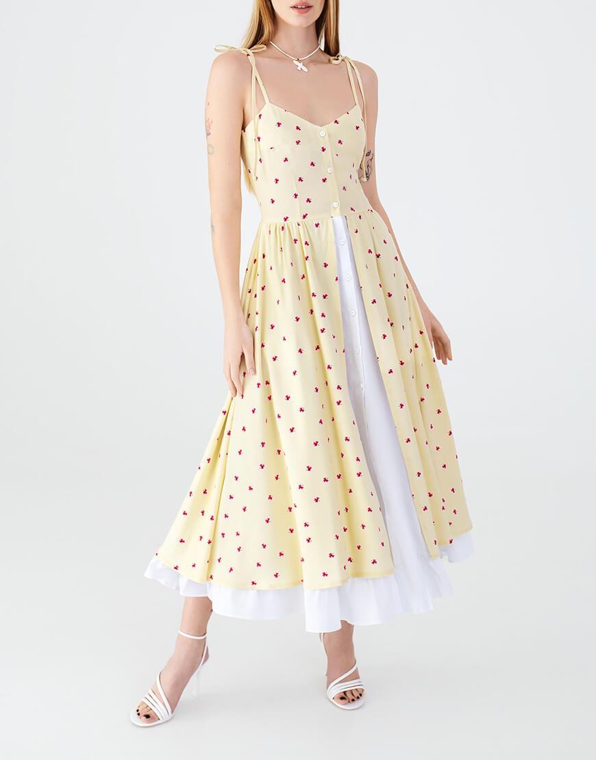 Доставка впродовж 2-5 робочих днівСукня в довжині максі з двошаровою спідницею. Відмінно поєднується з будь-яким взуттям: каблук або плоский хід – вибір за Вами!