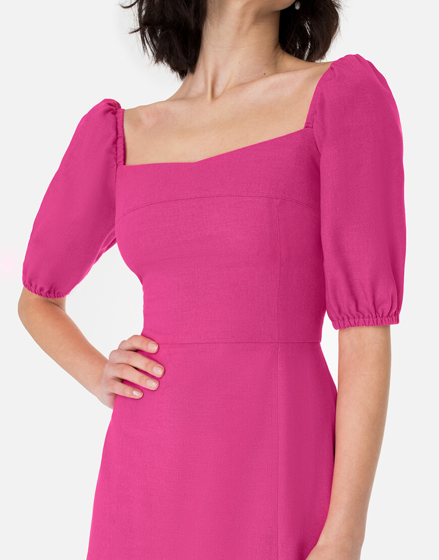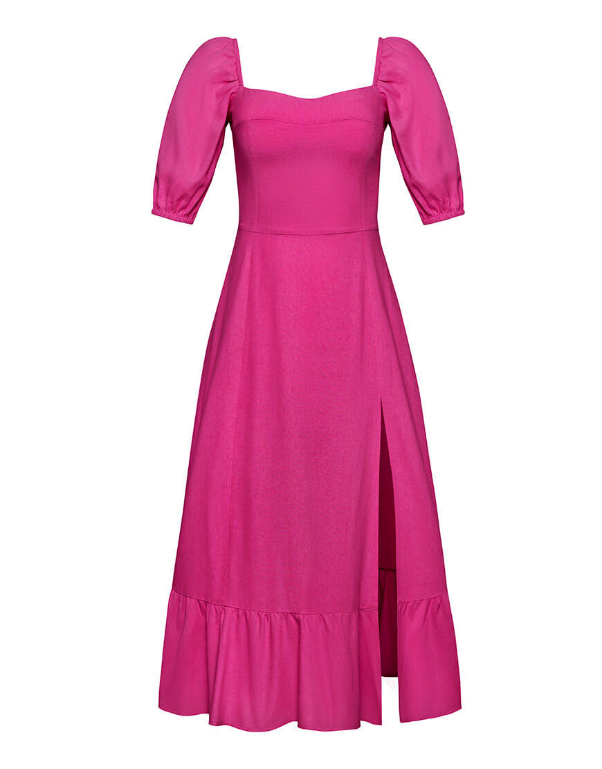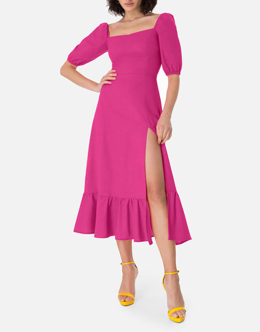 Доставка впродовж 2-5 робочих днівСукня у довжині міді з елегантним розрізом по ніжці. Відмінно поєднується з будь-яким взуттям: каблук або плоский хід – вибір за Вами! Виконано із натурального льону.
