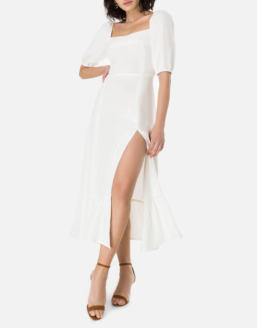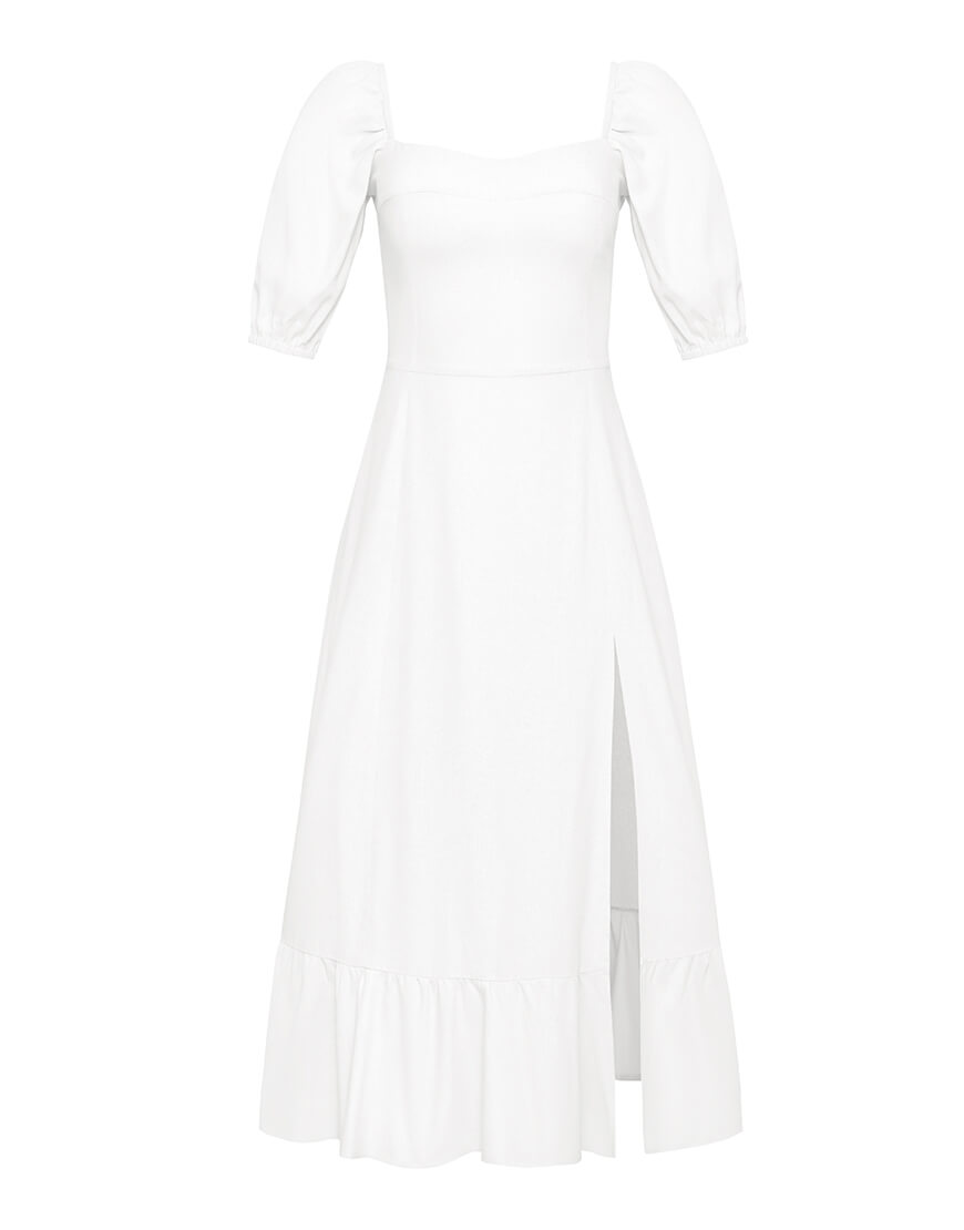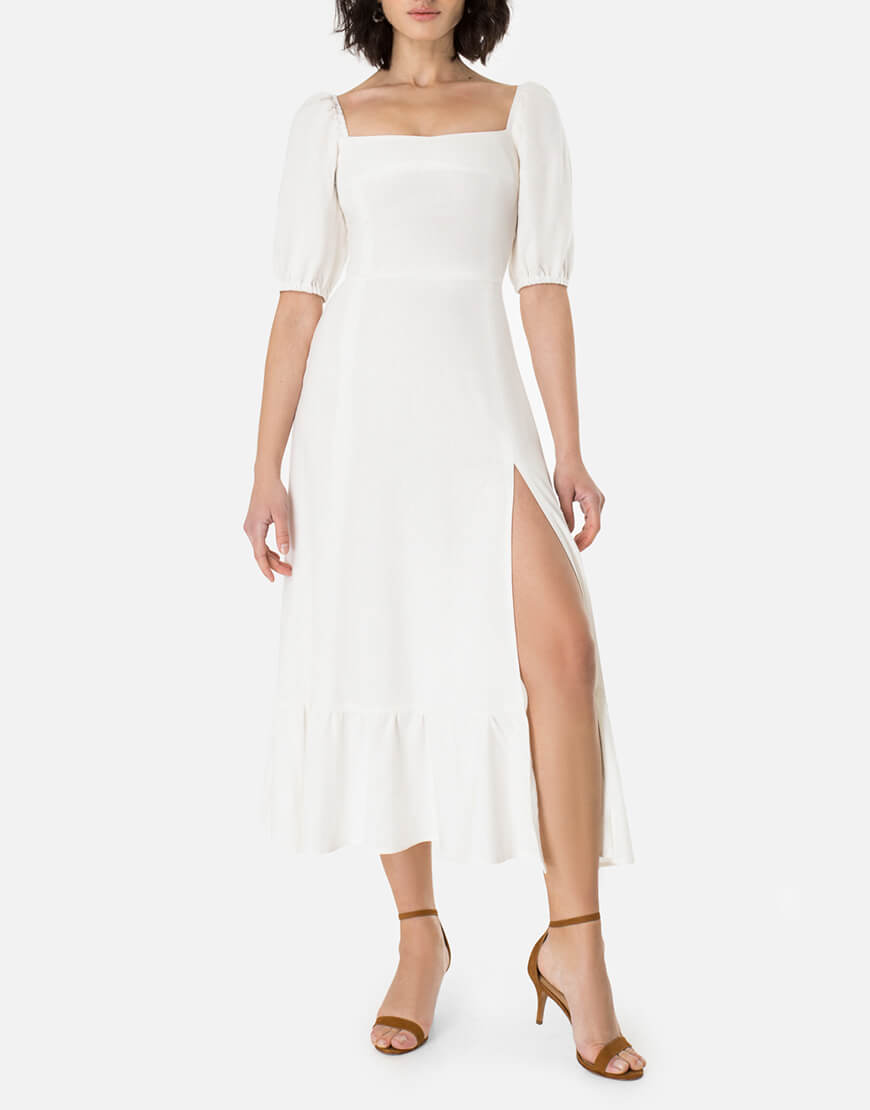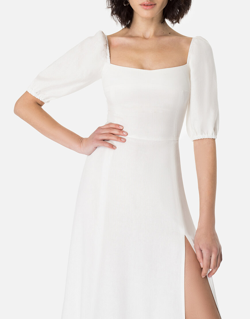 Доставка впродовж 2-5 робочих днівСукня у довжині міді з елегантним розрізом по ніжці. Відмінно поєднується з будь-яким взуттям: каблук або плоский хід – вибір за Вами! Виконано із натурального льону.