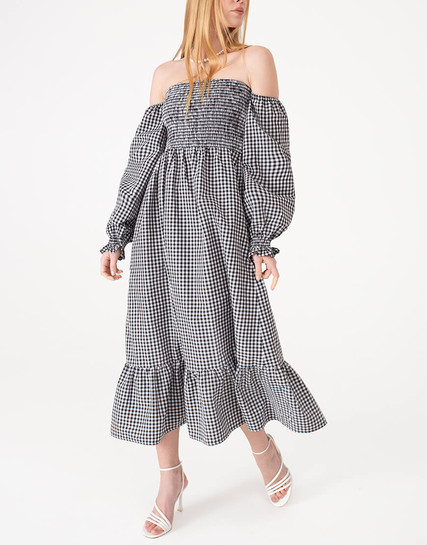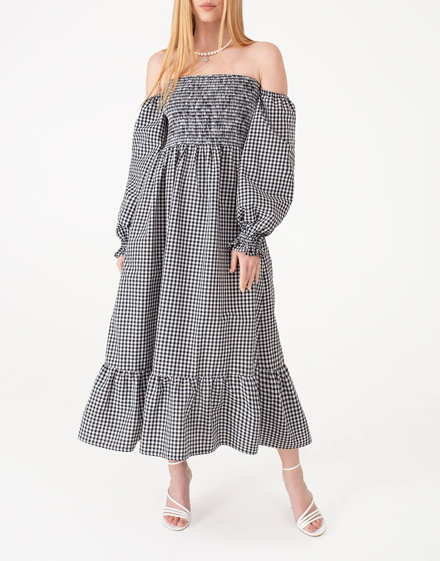 Доставка впродовж 2-5 робочих днівКокетлива та жіночна сукня з об’ємними рукавами. Відмінно поєднується з будь-яким взуттям: каблук або плоский хід – вибір за Вами!