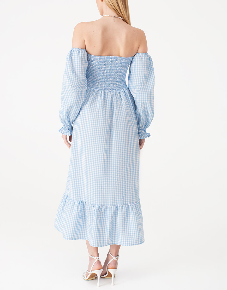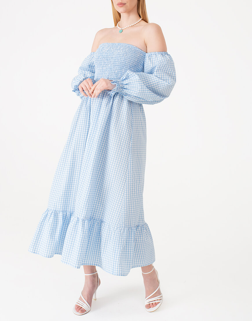 Доставка впродовж 2-5 робочих днівКокетлива та жіночна сукня з об’ємними рукавами. Відмінно поєднується з будь-яким взуттям: каблук або плоский хід – вибір за Вами!