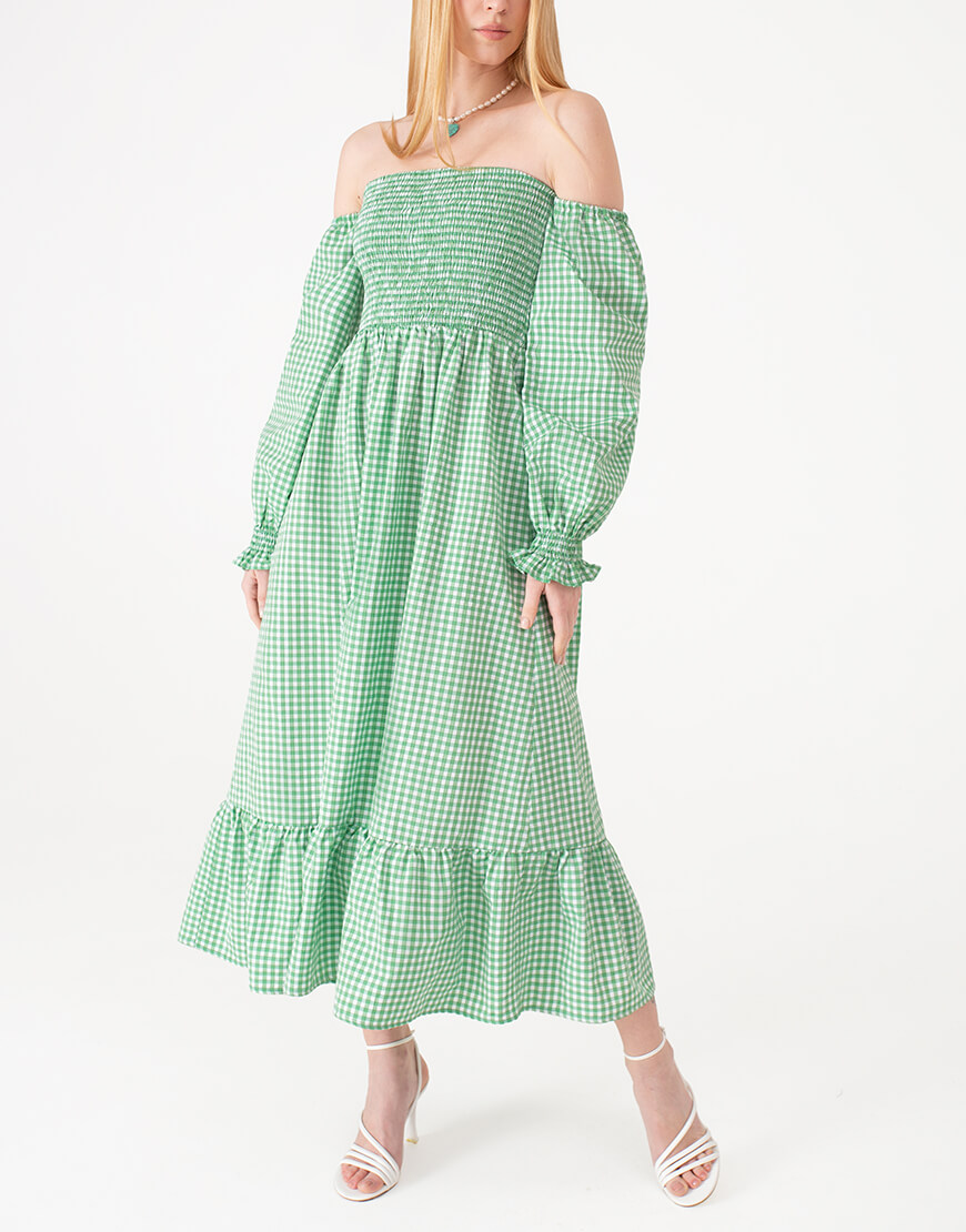 Доставка впродовж 2-5 робочих днівКокетлива та жіночна сукня з об’ємними рукавами. Відмінно поєднується з будь-яким взуттям: каблук або плоский хід – вибір за Вами!