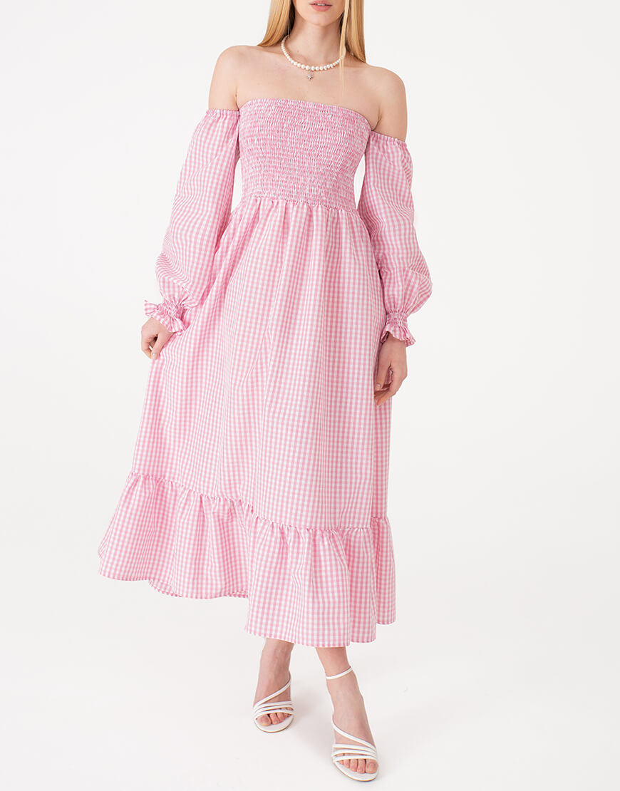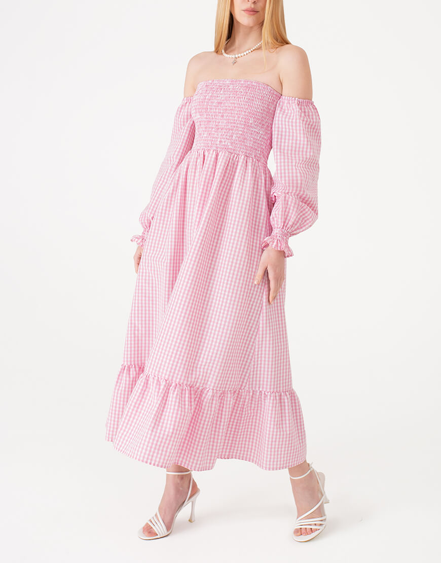 Сукня з об’ємними рукавами рожева