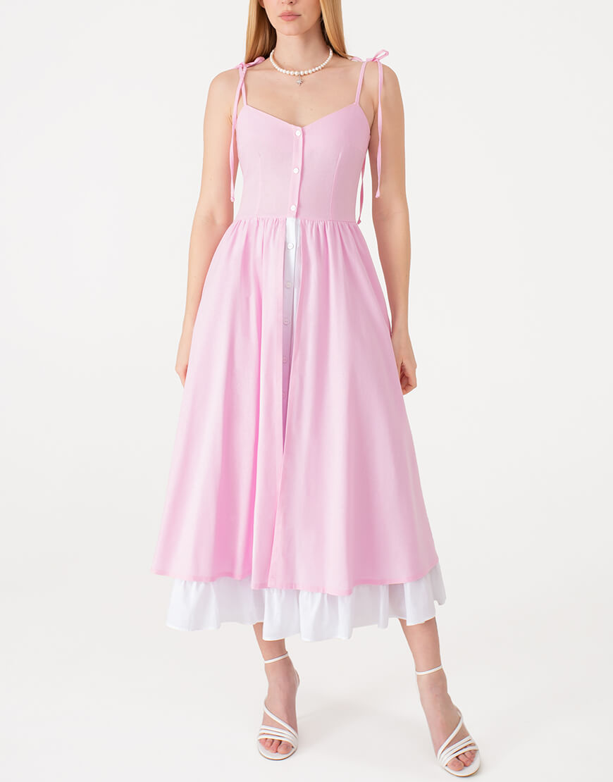 Доставка впродовж 2-5 робочих днівСукня в довжині максі з двошаровою спідницею. Відмінно поєднується з будь-яким взуттям: каблук або плоский хід – вибір за Вами!