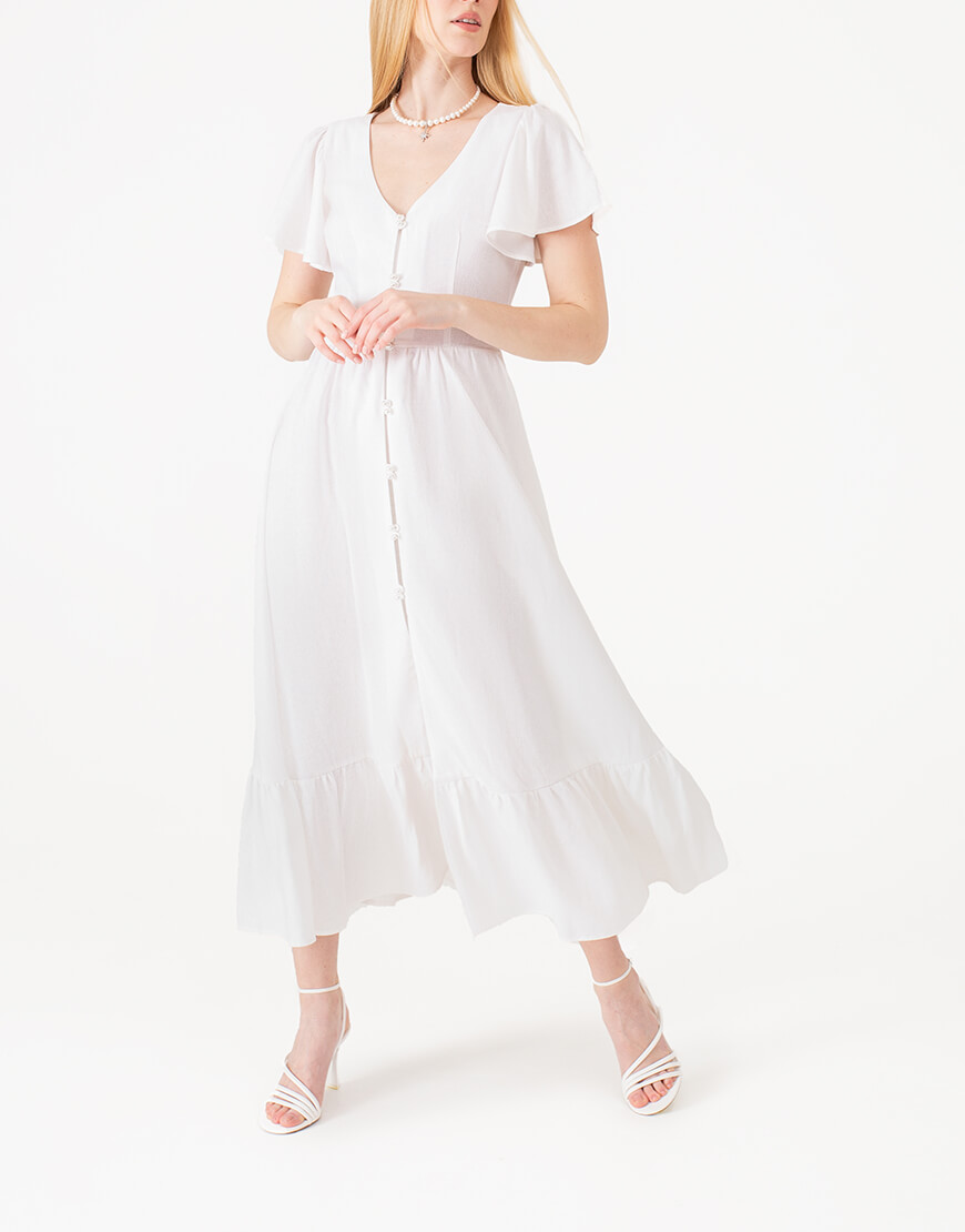 Лляна сукня з гудзиками біла