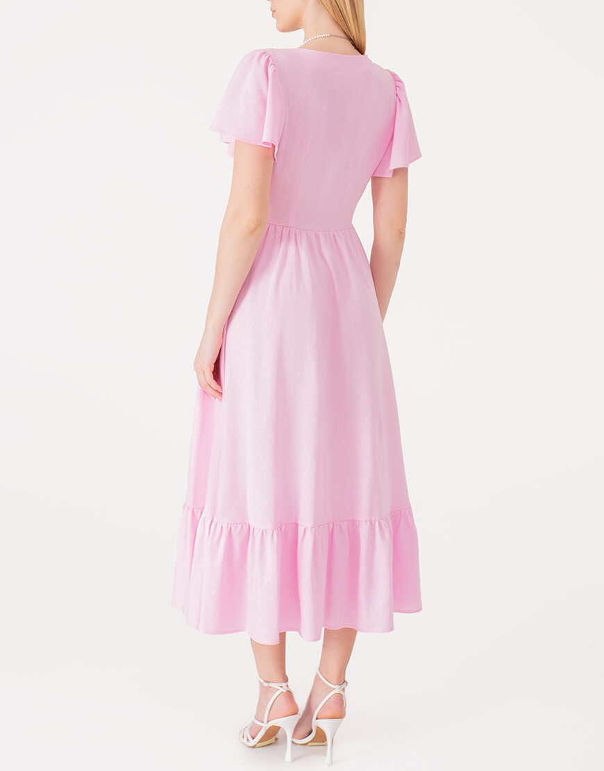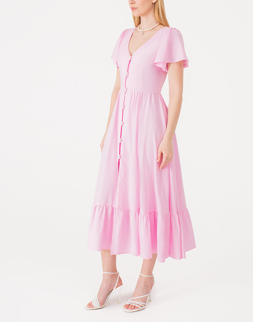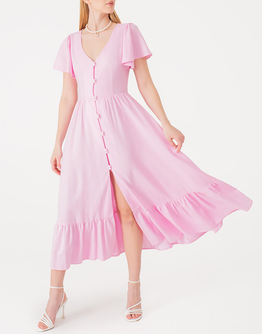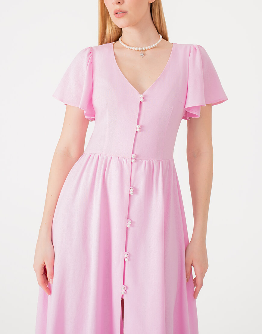 Доставка впродовж 2-5 робочих днівЛляна сукня в довжині максі, гудзики на сукні виконані в вигляді перлин.