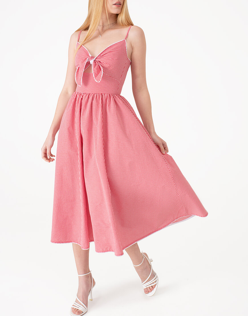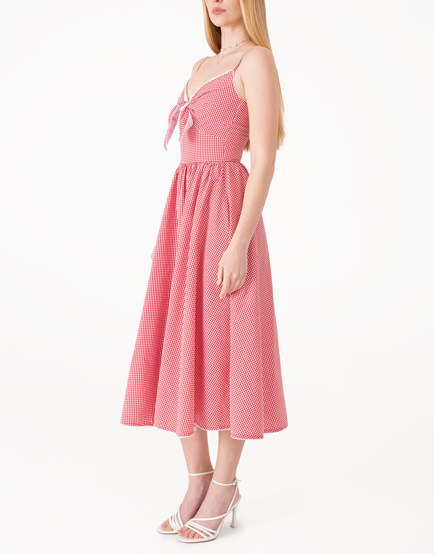 Сукня з зав’язкою у клітинку червона