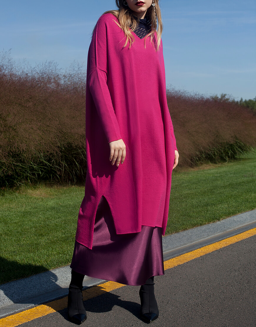 Безшовна суцільна сукня-туніка з розрізами з боків з тонкої вовни.