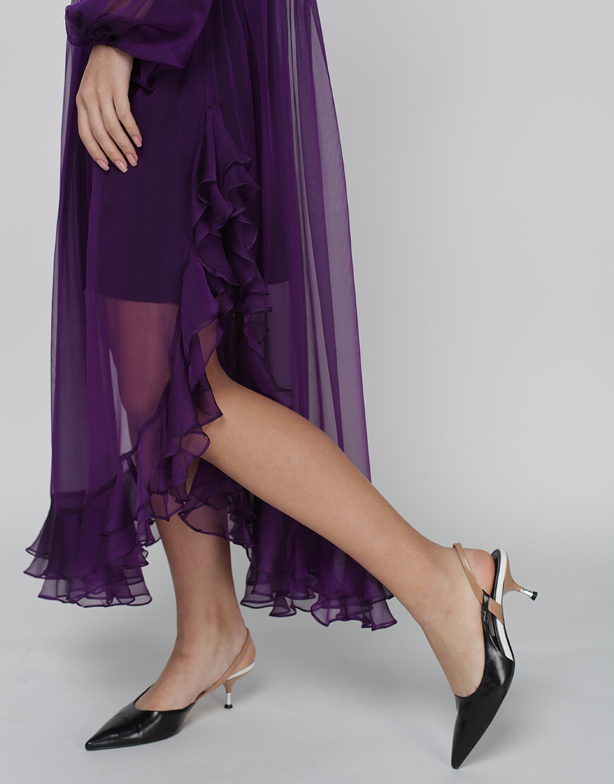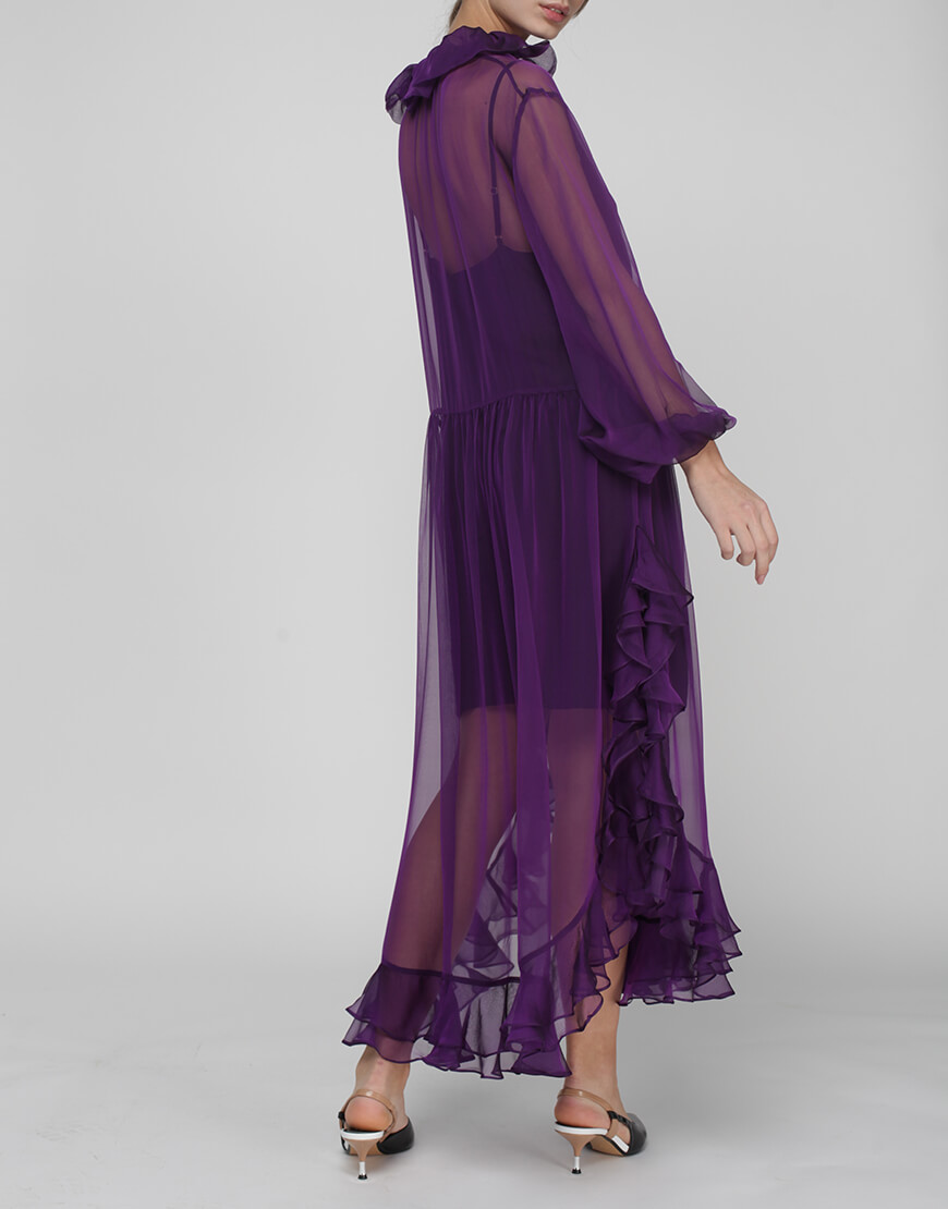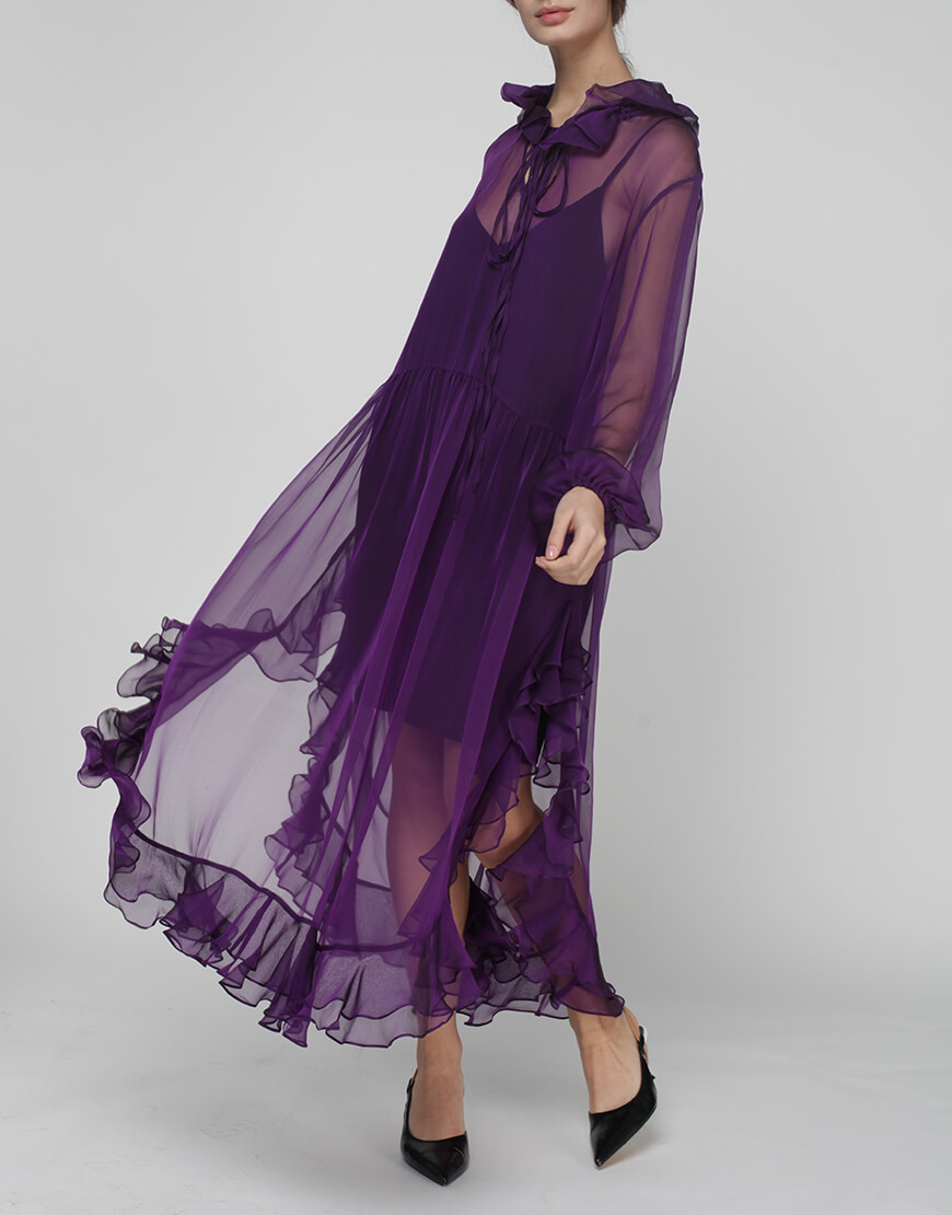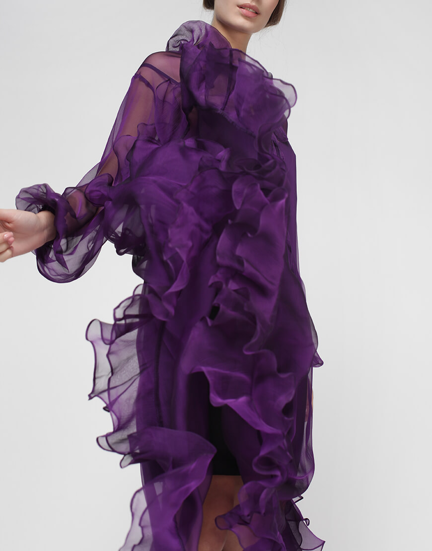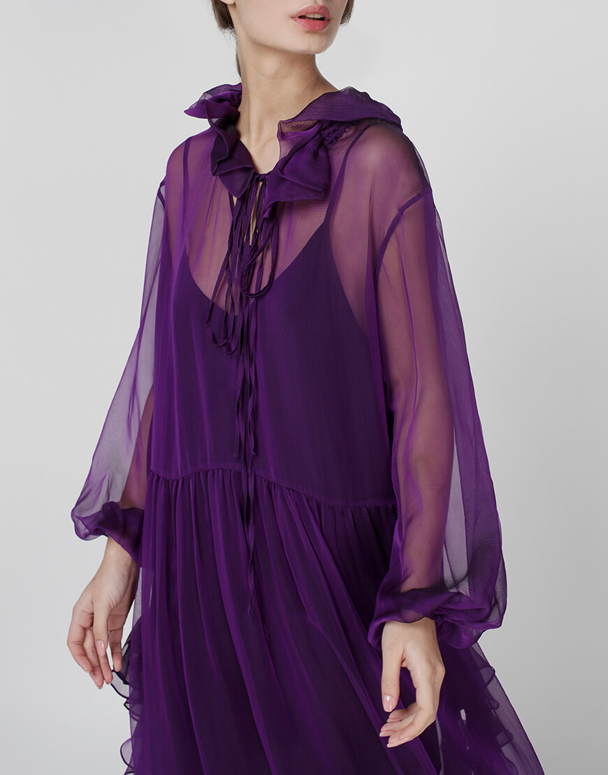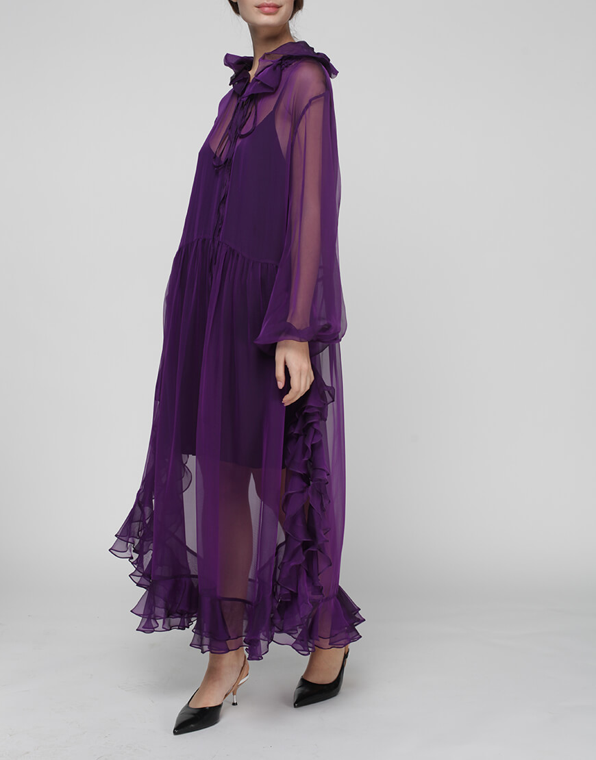 Летюча шифонова сукня “Orquidea” з шифону хамелеона з декоративним шарфом і подвійними воланами по низу. до сукні йде окремий знімний чохол-підкладка з віскози на регуляторах.