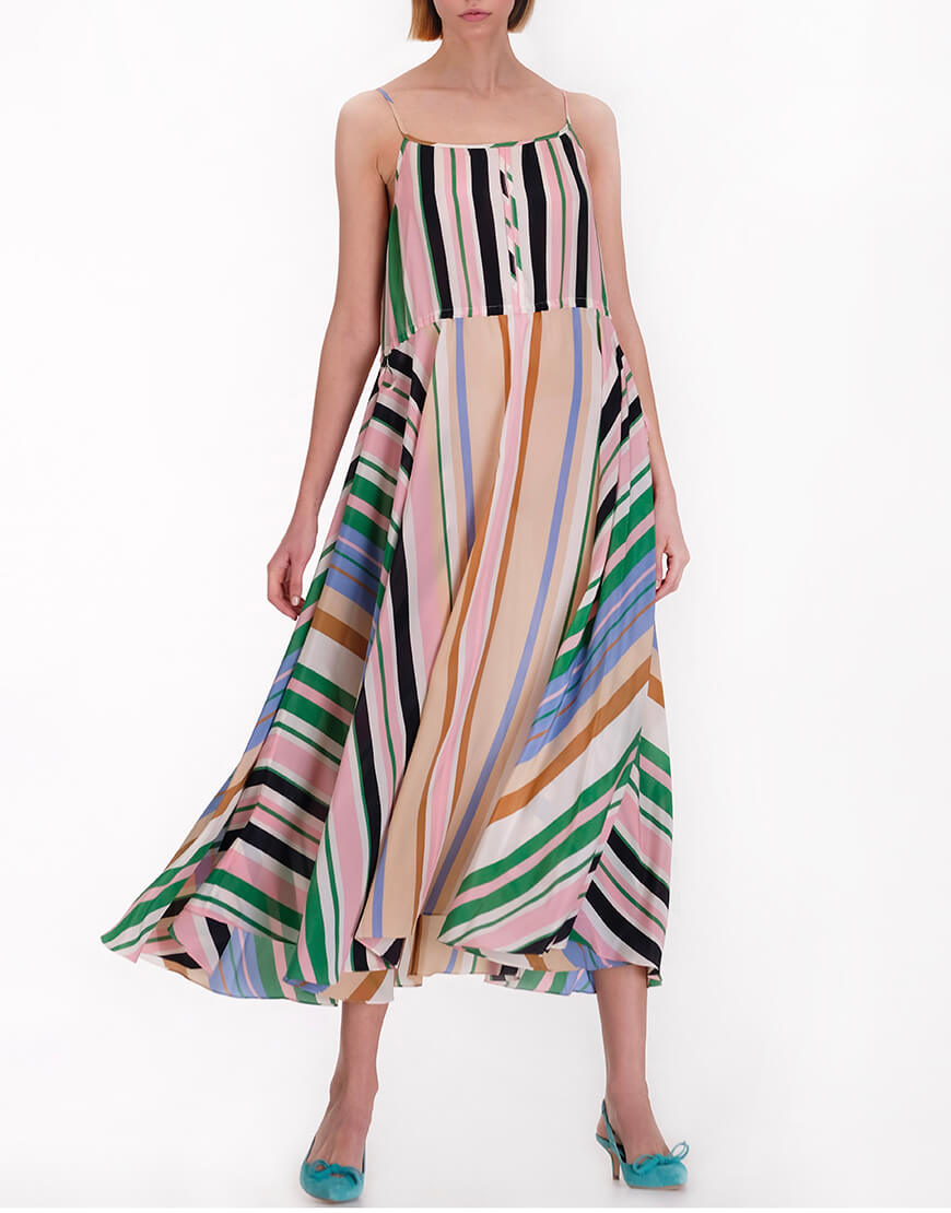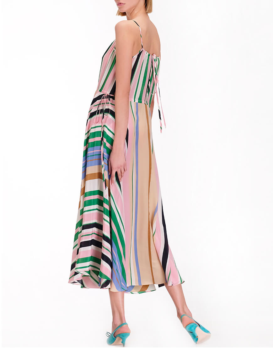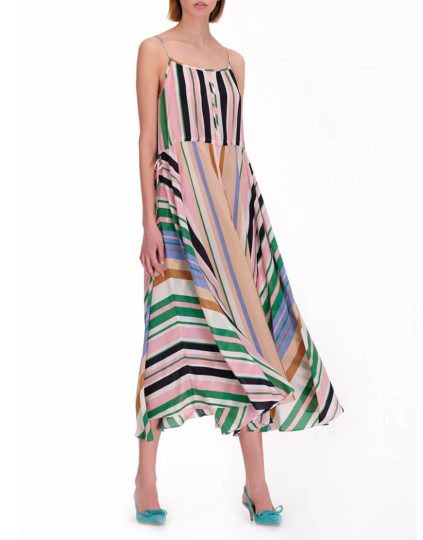 Шовкова сукня-сарафан на кулісках у райдужну смужку