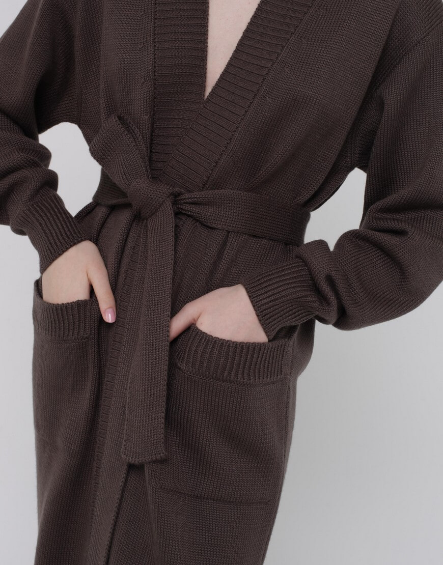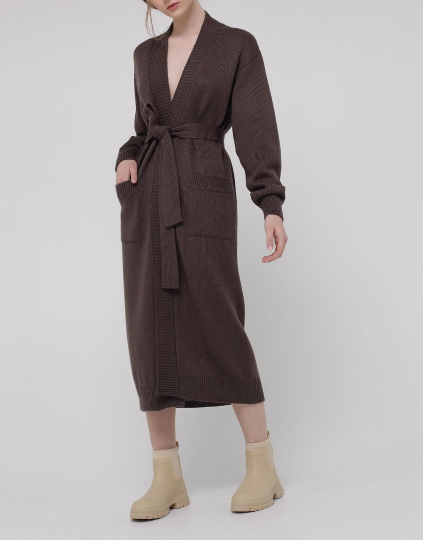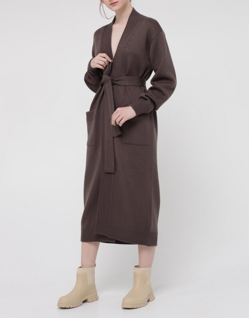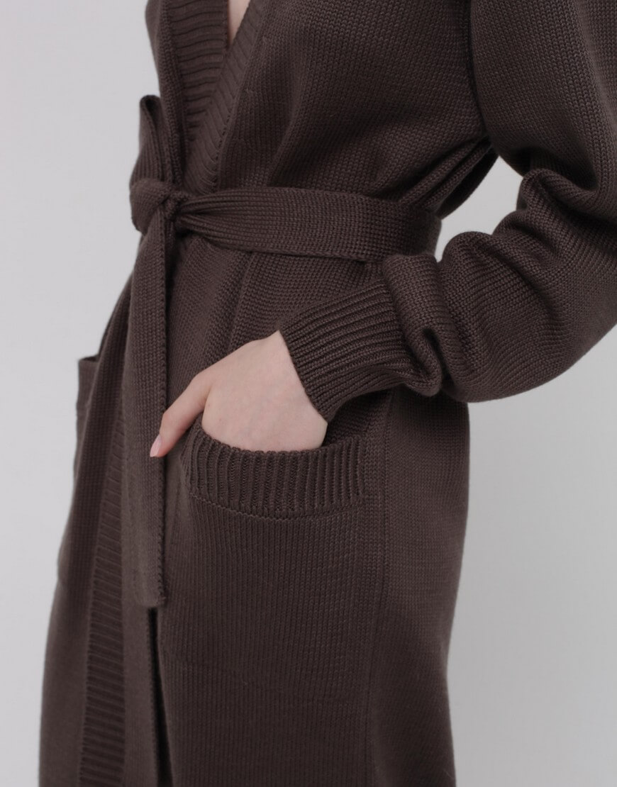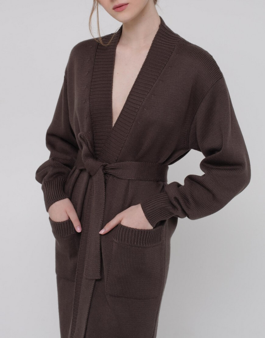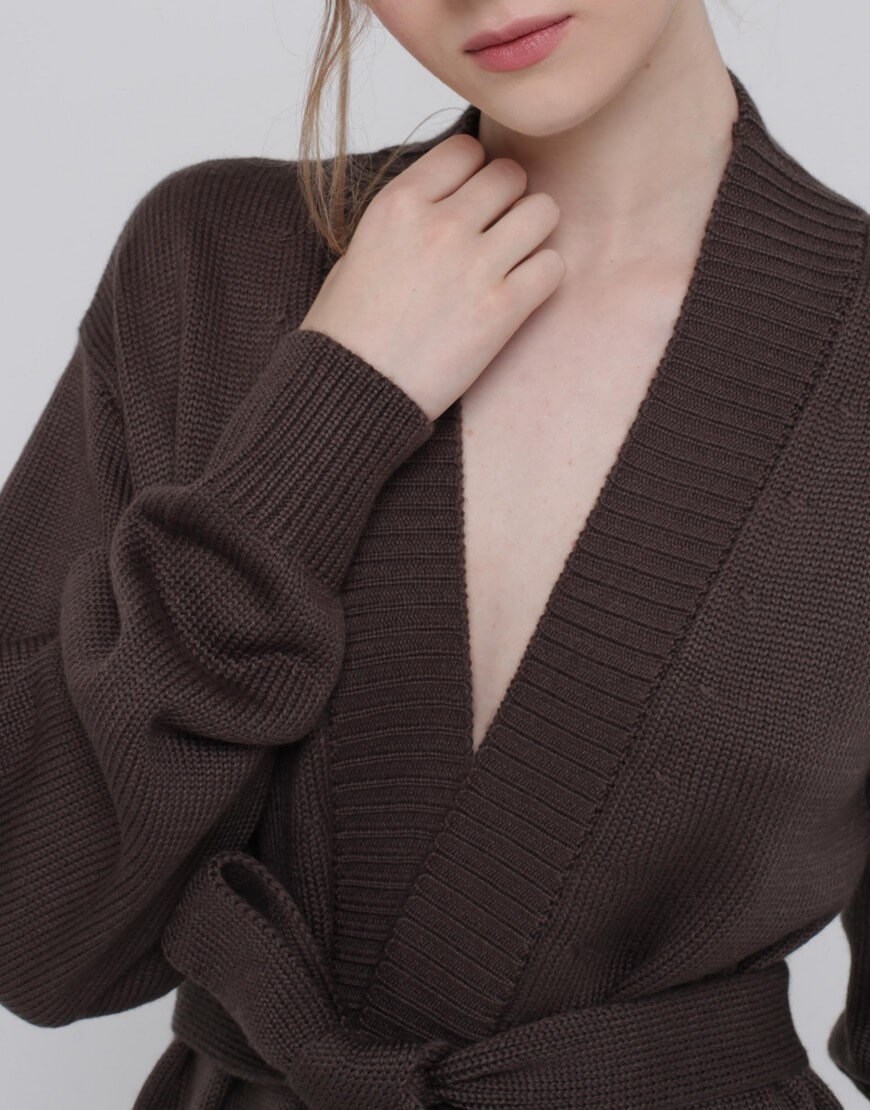 Кардиган із вовни на запах. Модель прямого силуету з поясом.