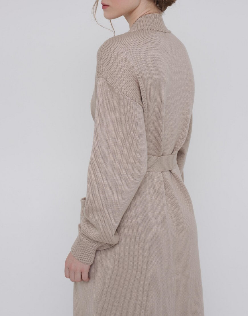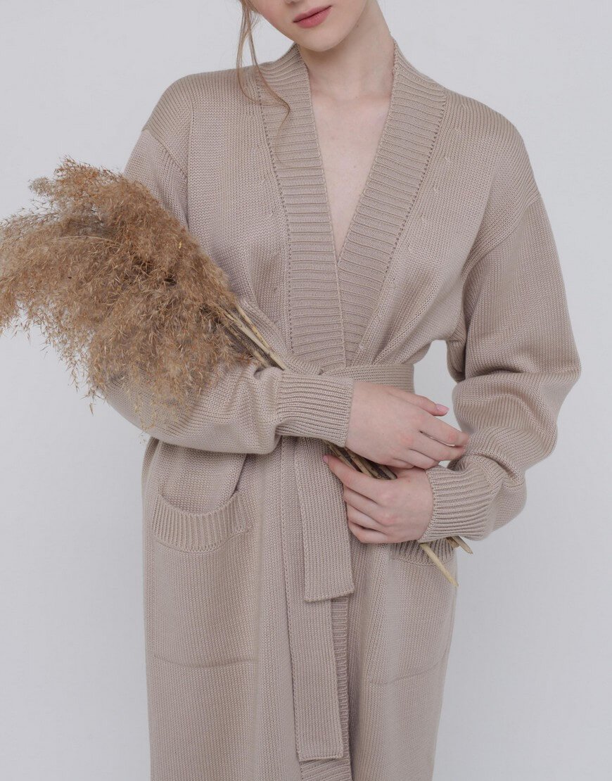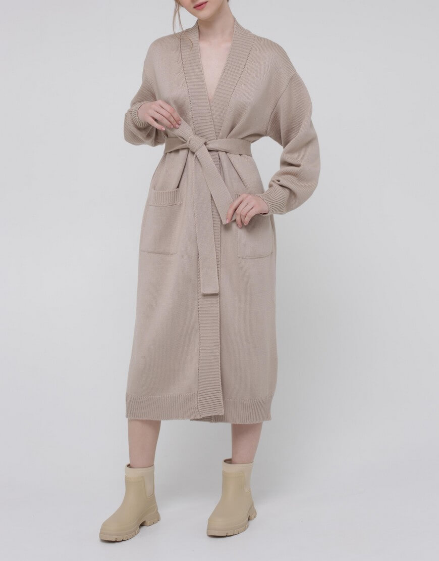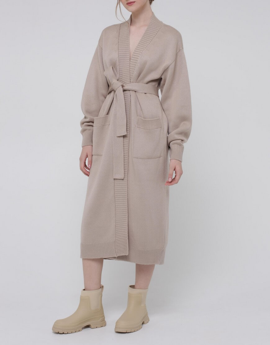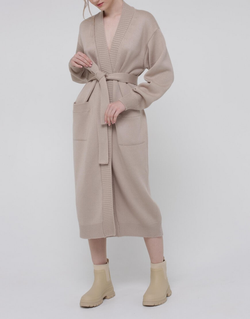Кардиган із вовни на запах. Модель прямого силуету з поясом.