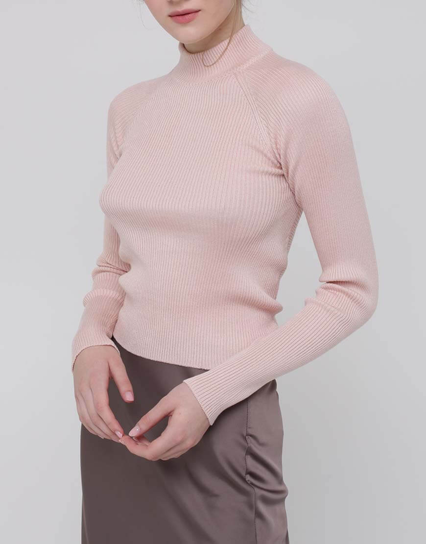 Тонкий джемпер з відкритою спиною з горловиню прилеглого силуету