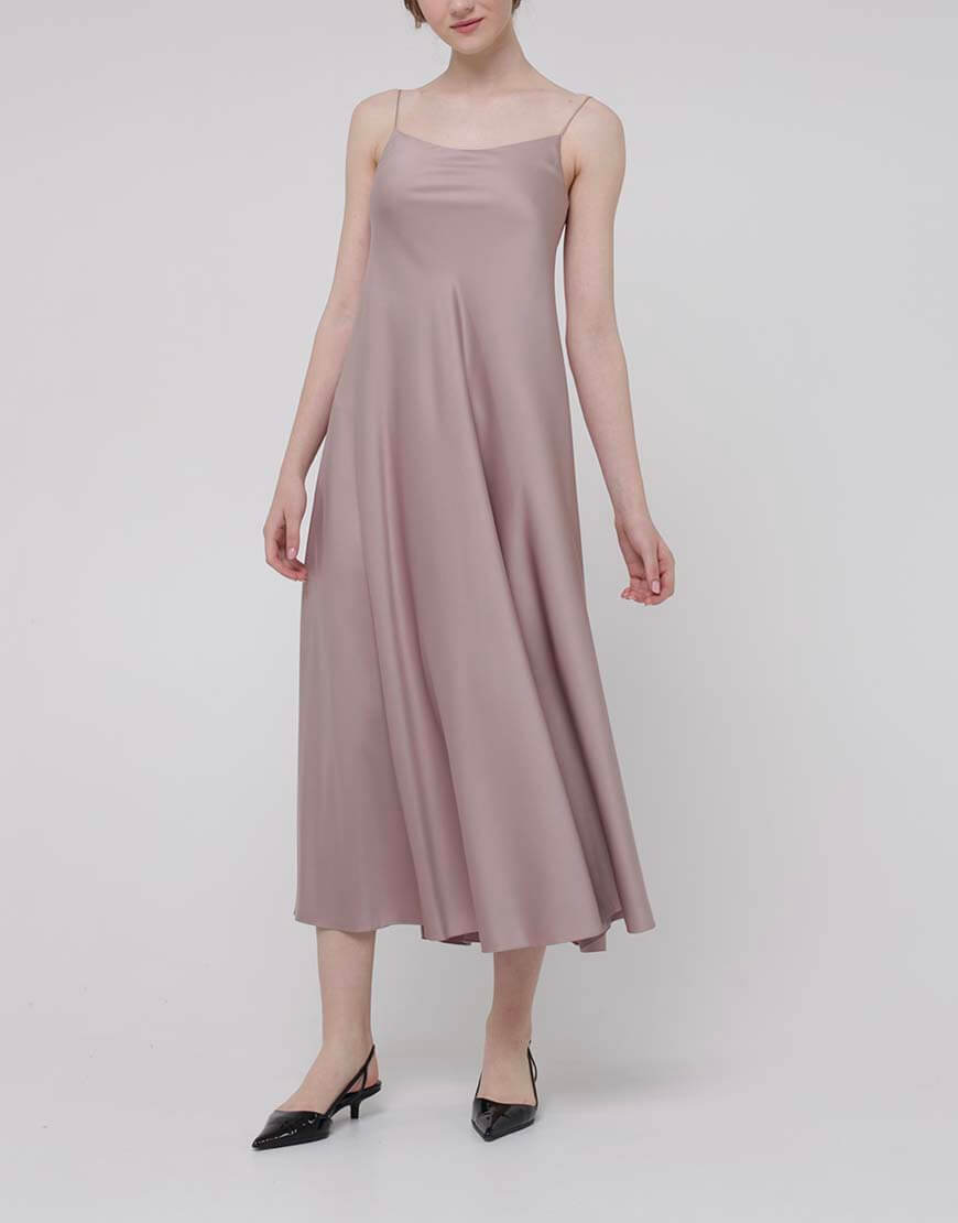 Шовкова сукня на тонких брительках, довжина міді. Модель вільного трапецієвидного силуету