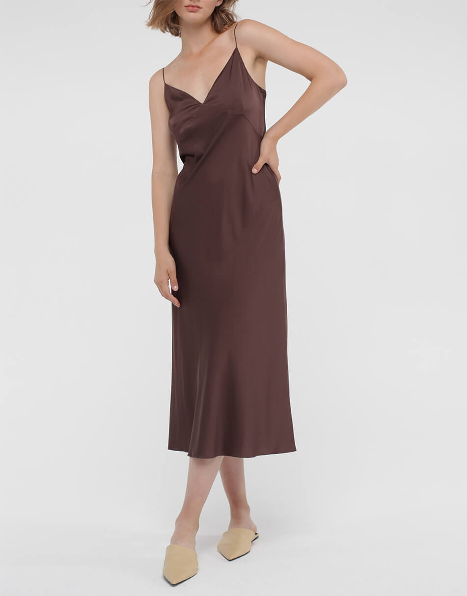 Доставка впродовж 2-5 робочих днівШовкова сукня комбінація на тонких бретельках. Модель трапецеподібного силуету, довжина міді.