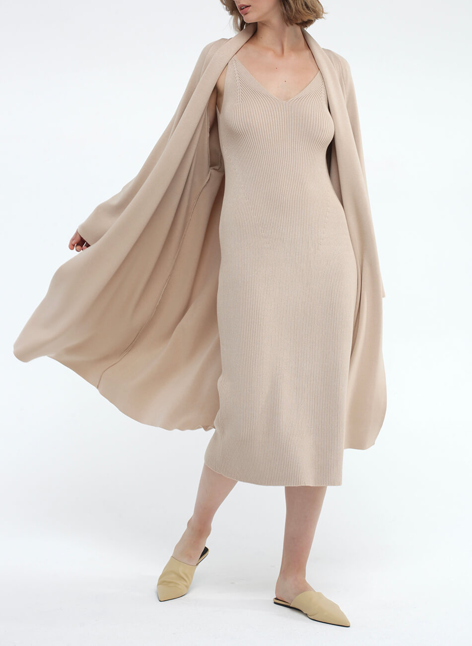 Легкий об’ємний кардиган з шалевим коміром з віскози. Довжина міді.