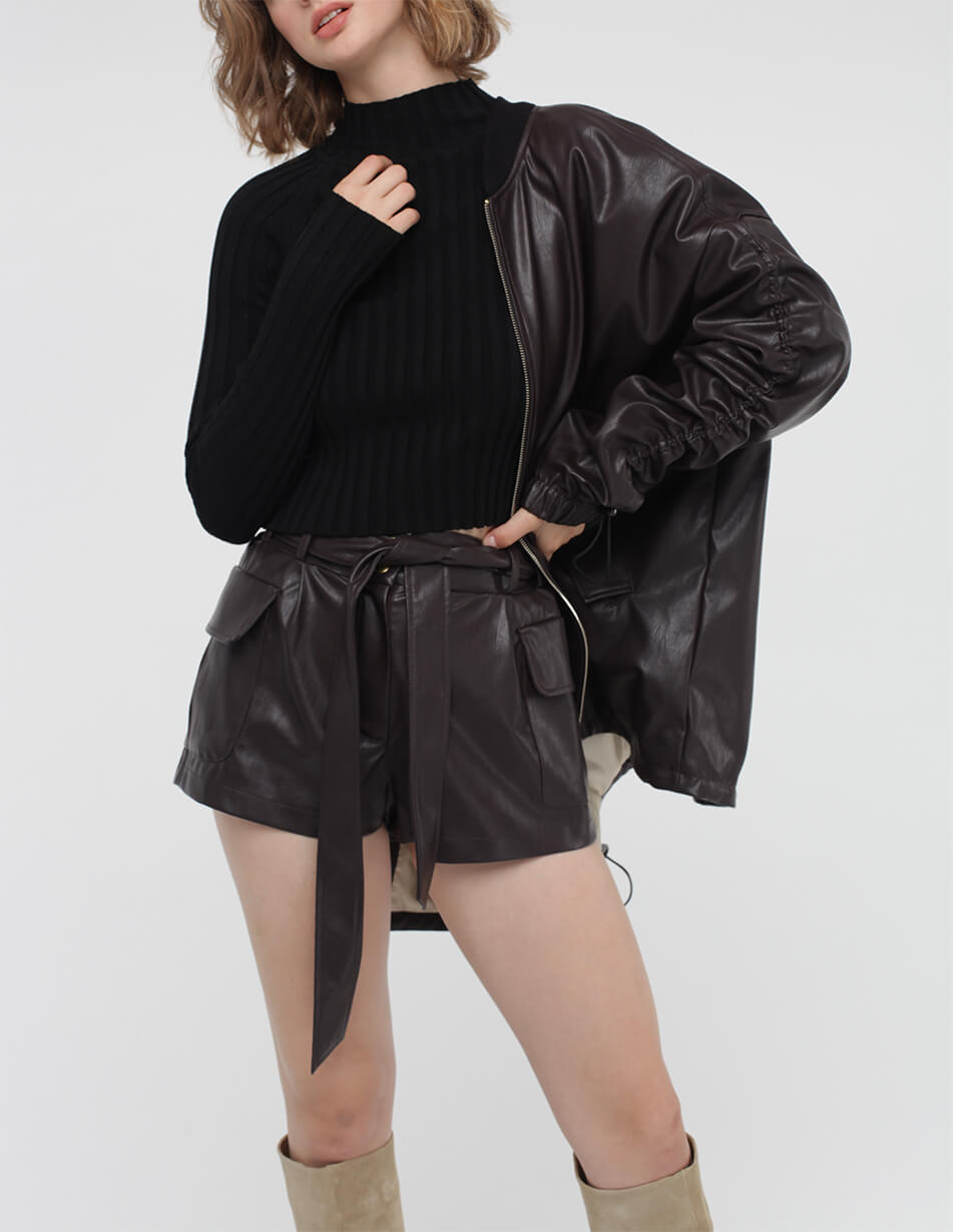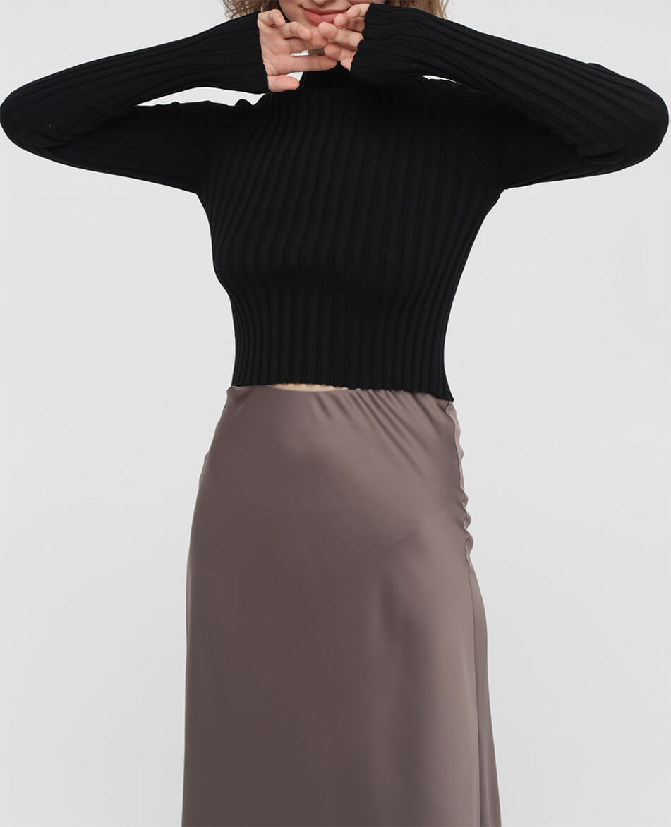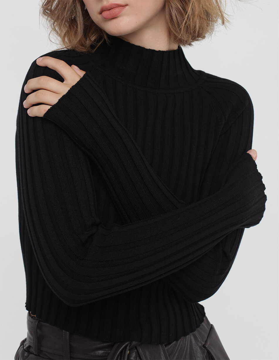 Джемпер з віскози під горло приталеного силуету. Укорочений.