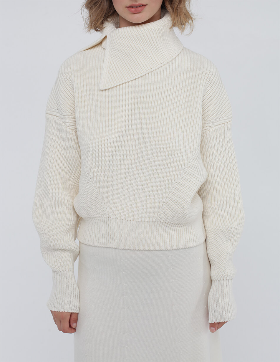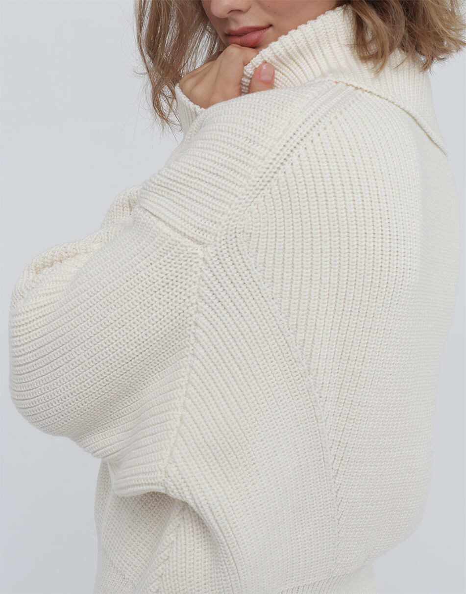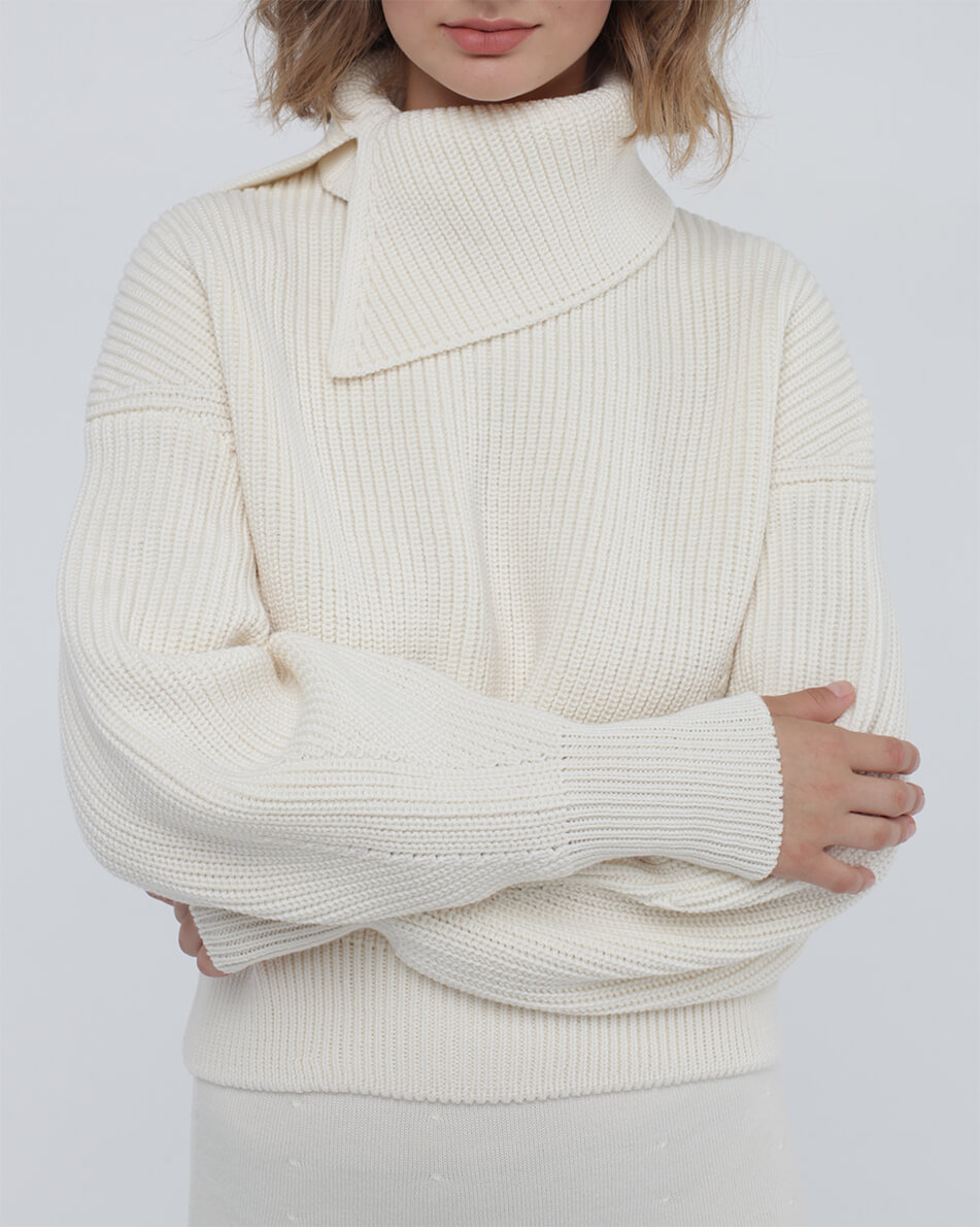 Доставка впродовж 2-5 робочих днівОб’ємний джемпер зі знімним коміром з мериносової вовни.
