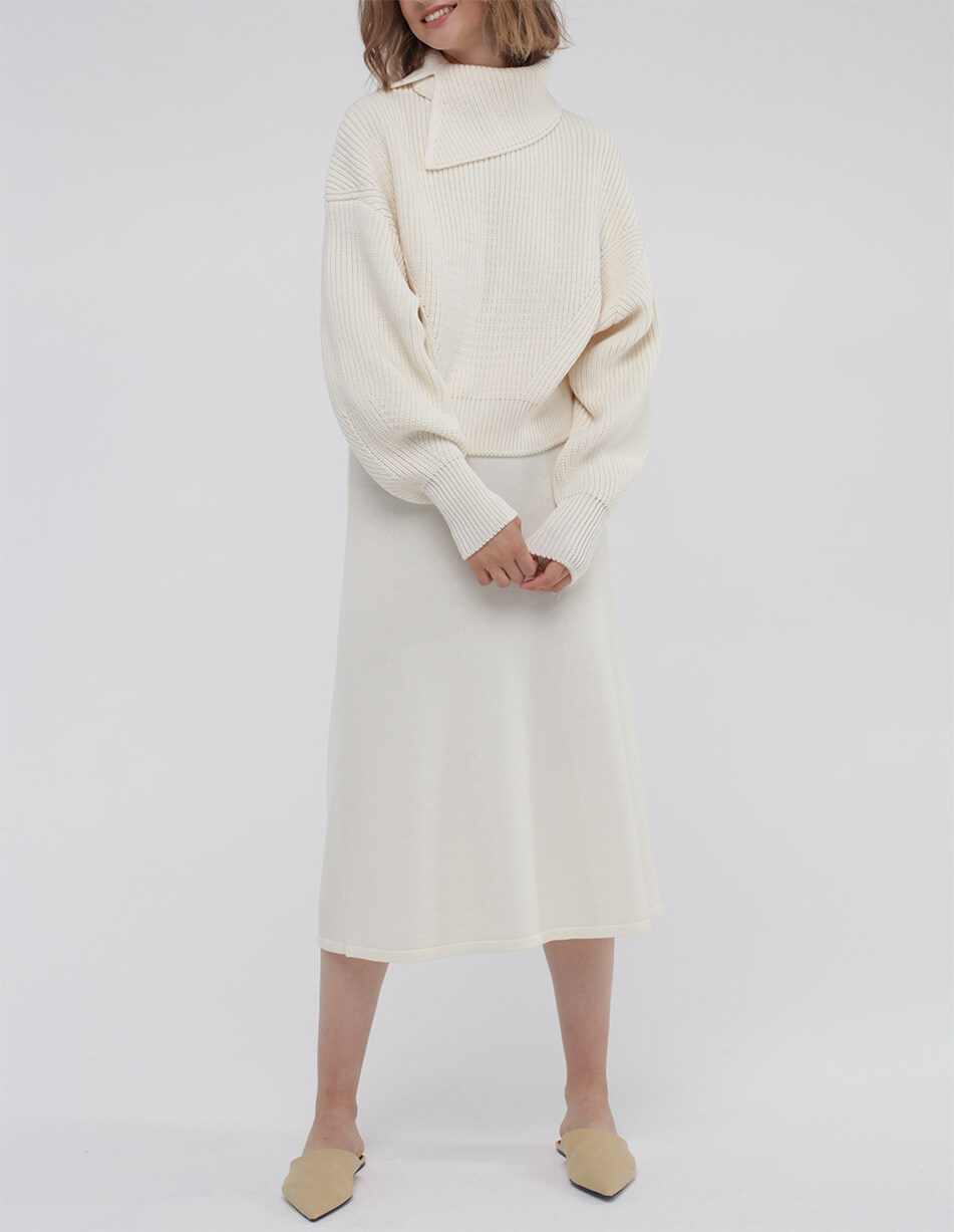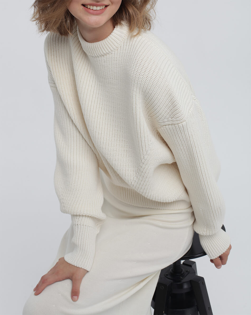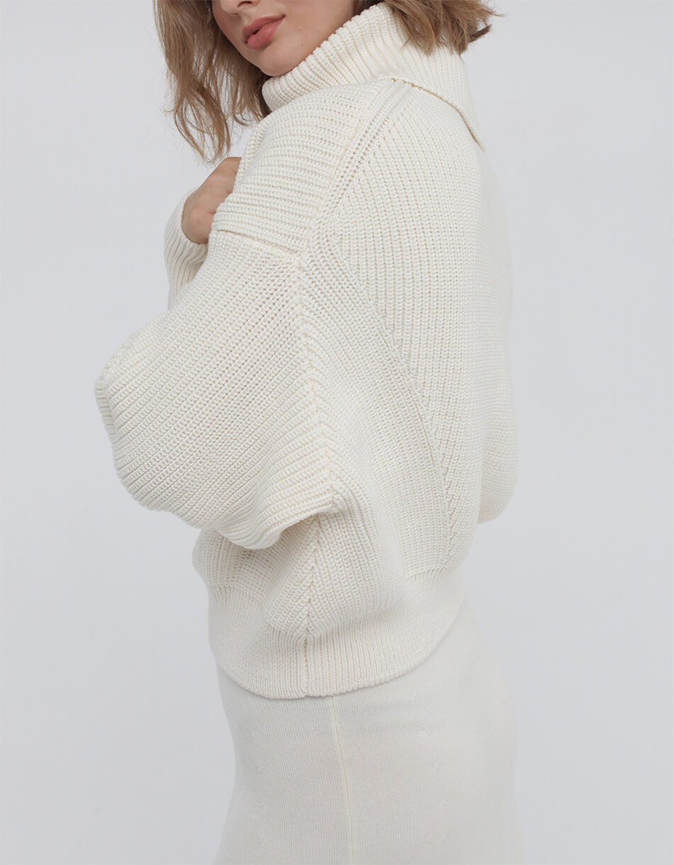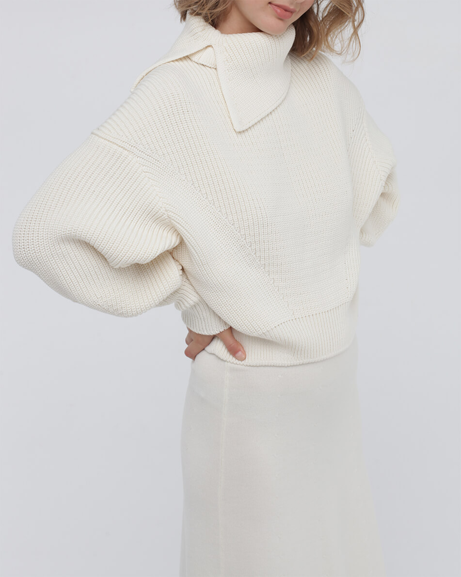 Доставка впродовж 2-5 робочих днівОб’ємний джемпер зі знімним коміром з мериносової вовни.
