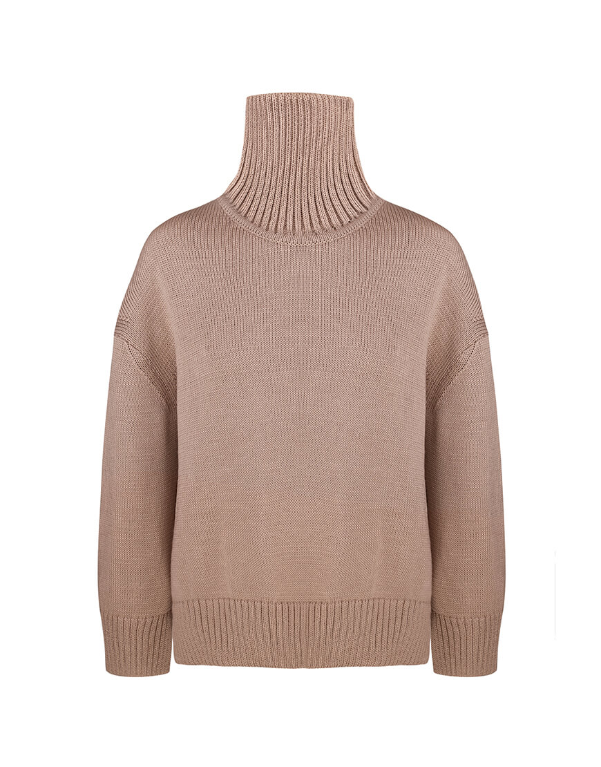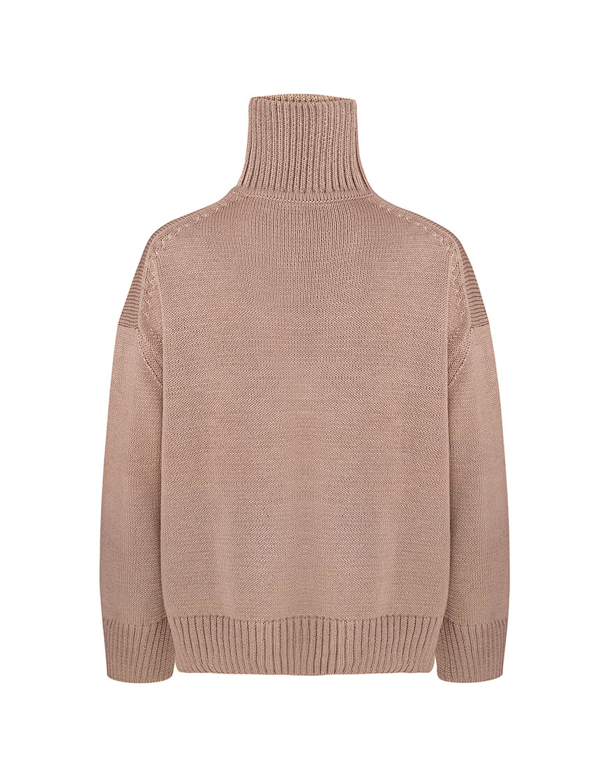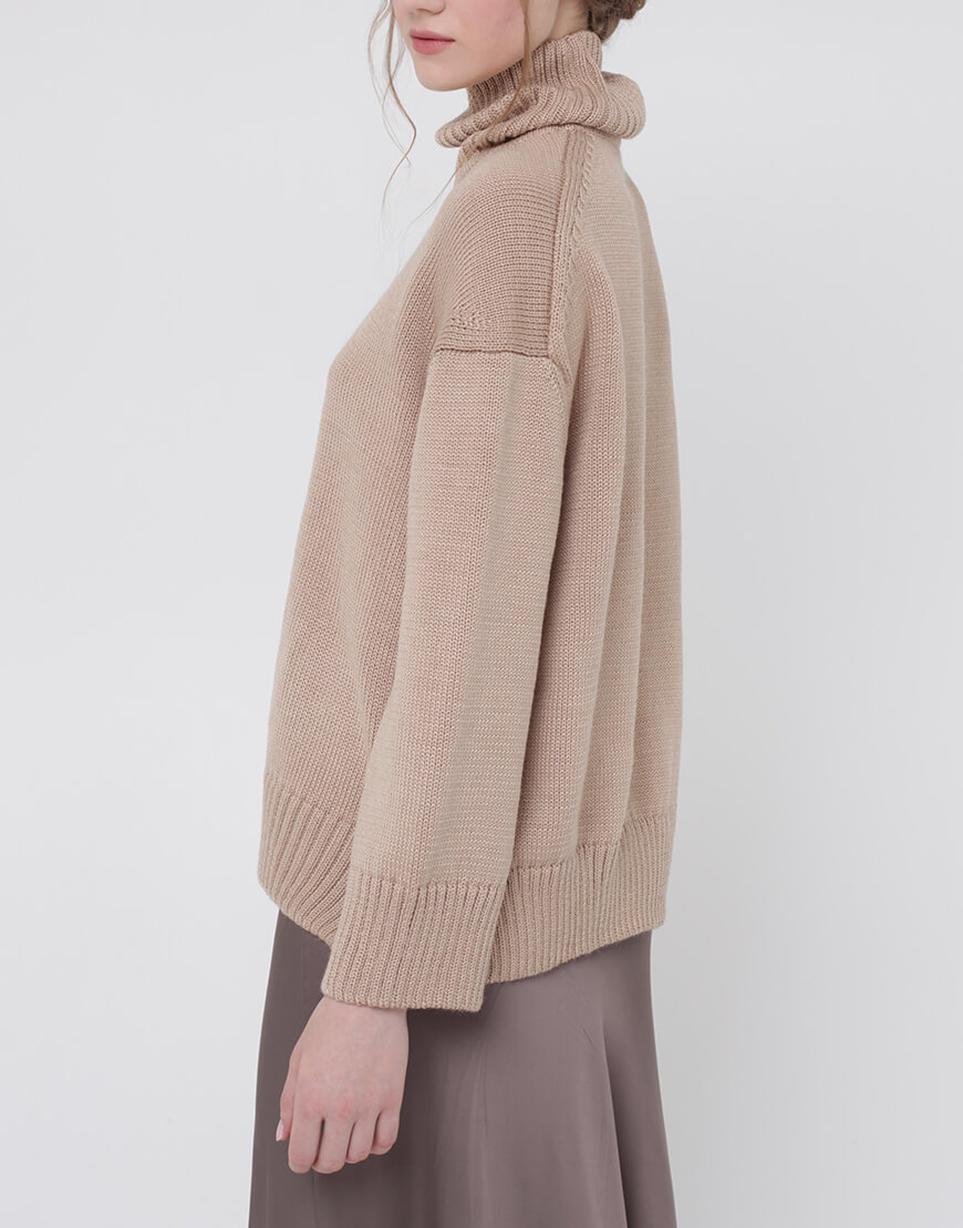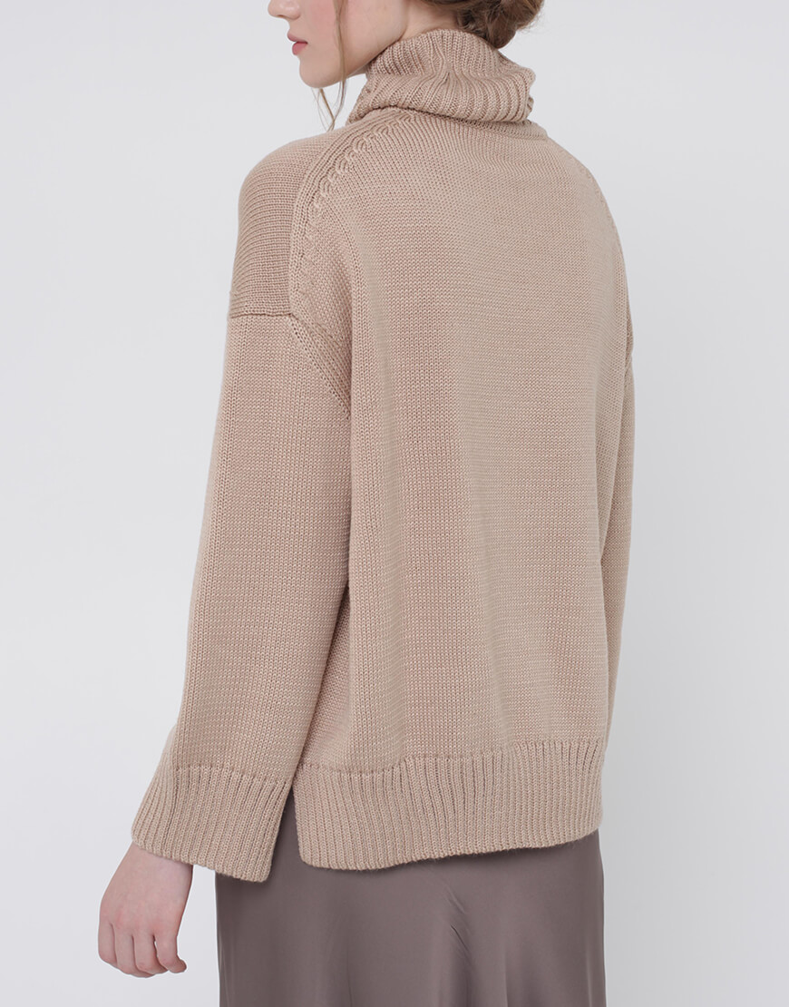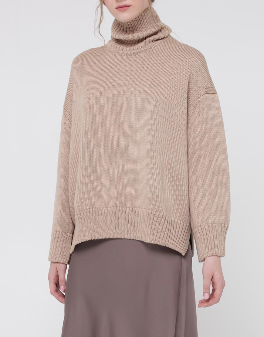 Об’ємний джемпер з вовни з горловиною та розрізами по боках
