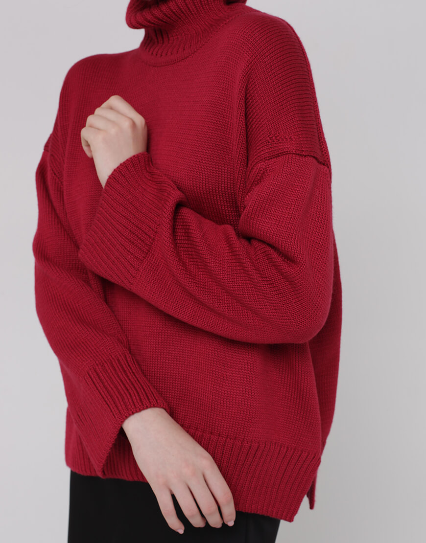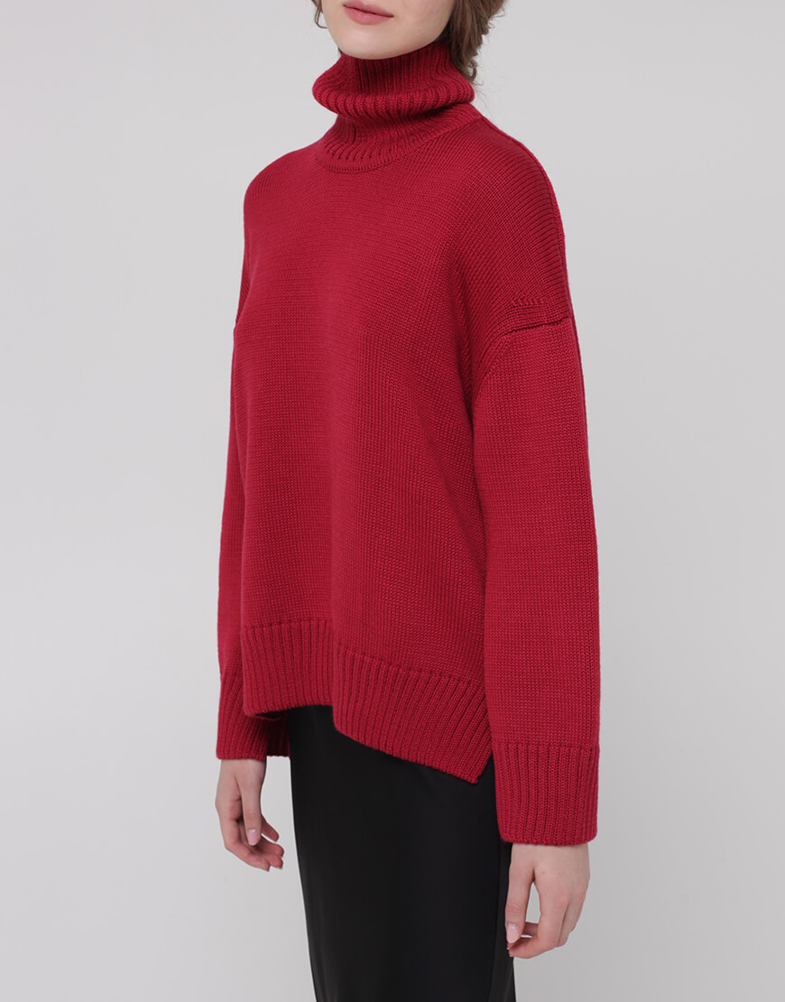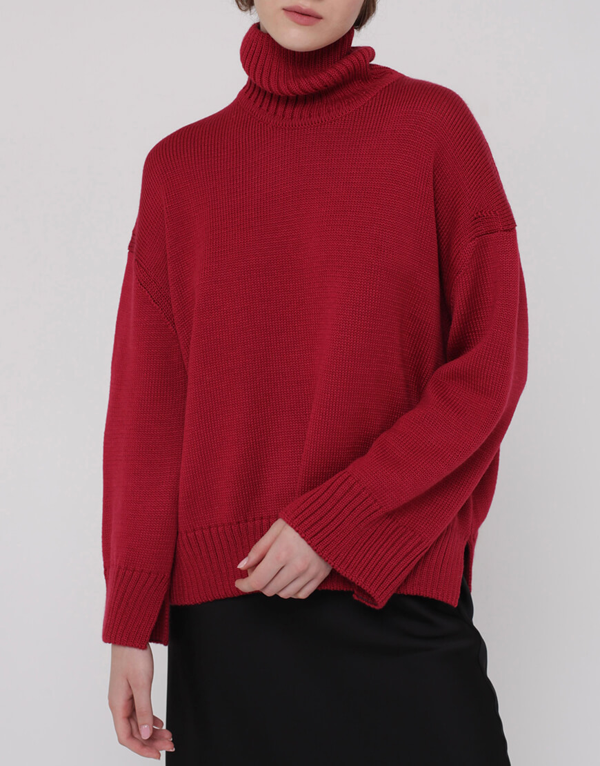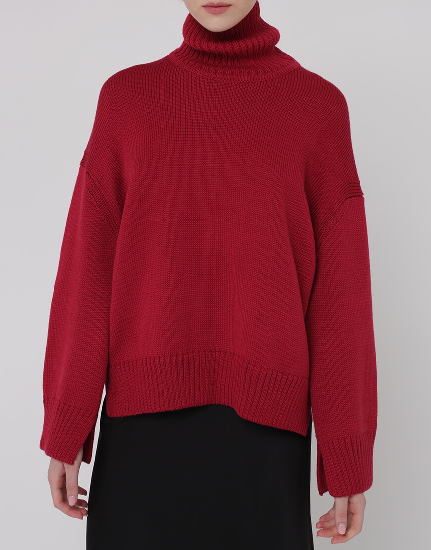 Об’ємний джемпер з вовни з горловиною та розрізами по бокам