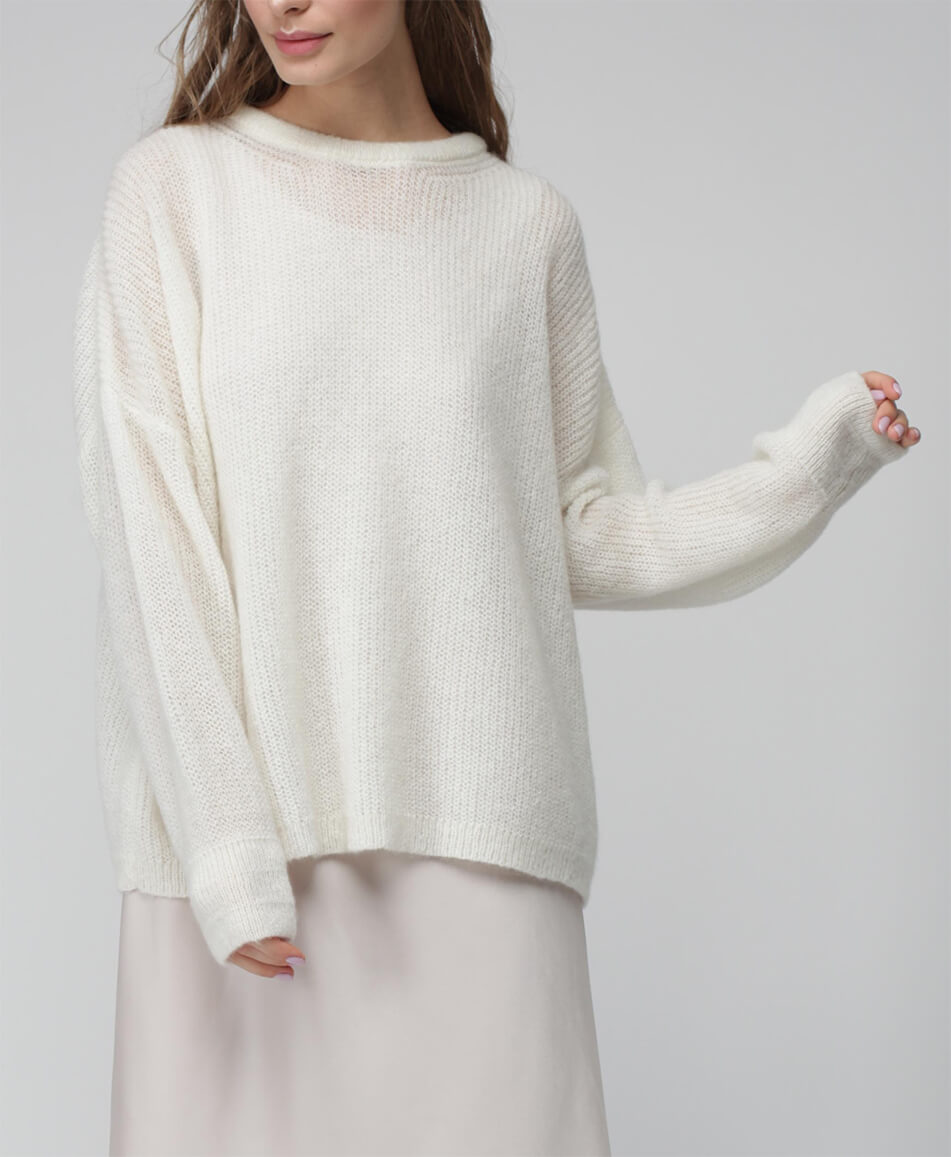 Об’ємний тонкий джемпер паутинка з мохеру. Модель оверсайз силуету.