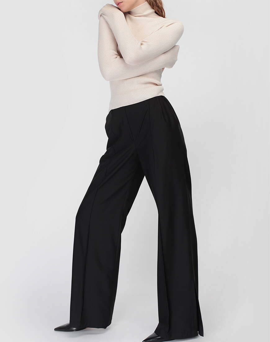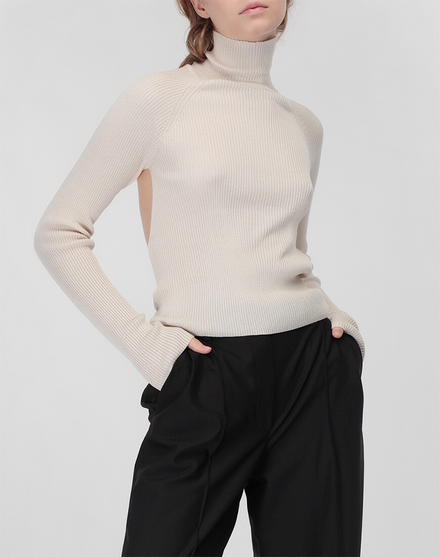 Джемпер під горло з віскози з відкритою спиною. Модель прилягаючого силуету з подовженим рукавом.
