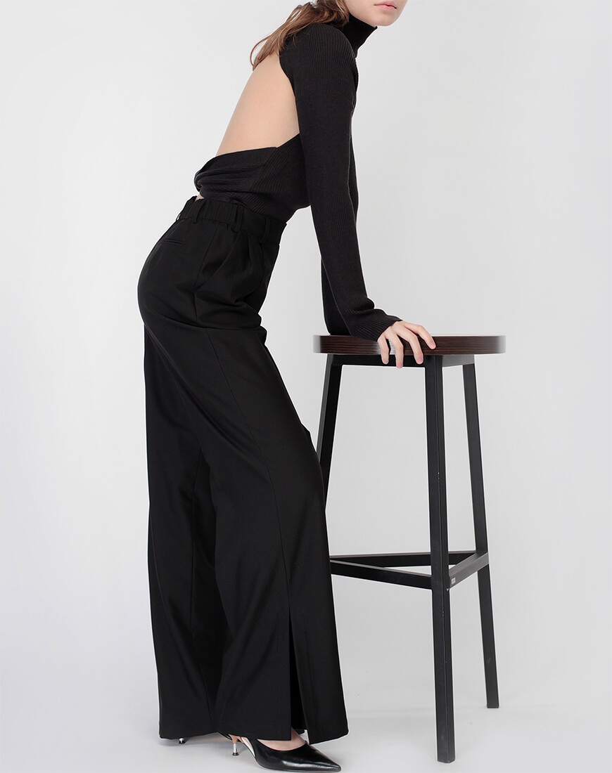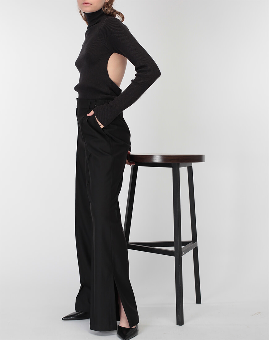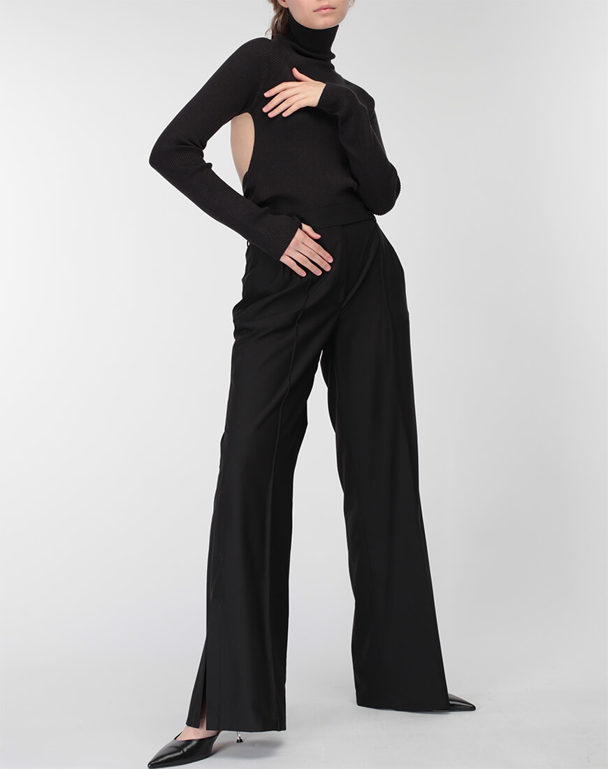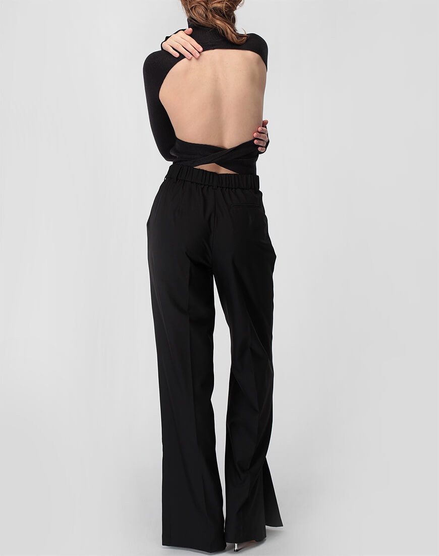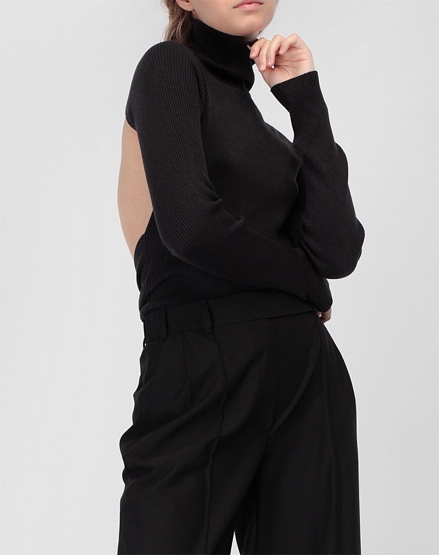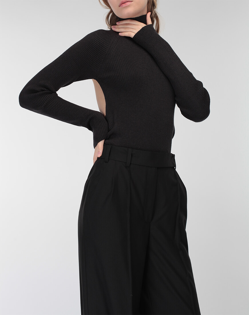 Джемпер під горло з віскози з відкритою спиною. Модель прилеглого силуету з подовженим рукавом.