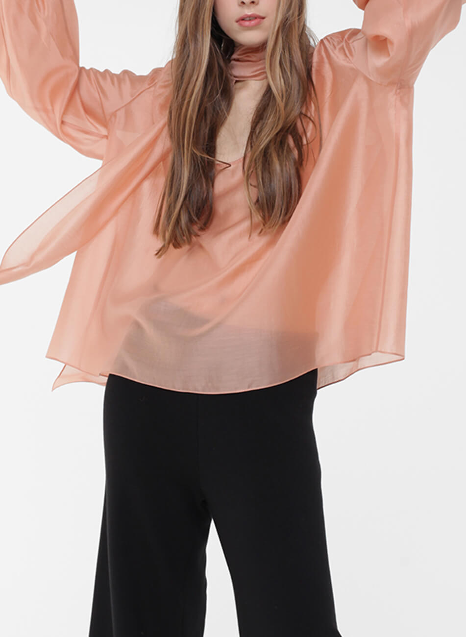 Доставка впродовж 2-5 робочих днівШовкова блузка з шарфом. Модель вільного силуету з об’ємним рукавом.