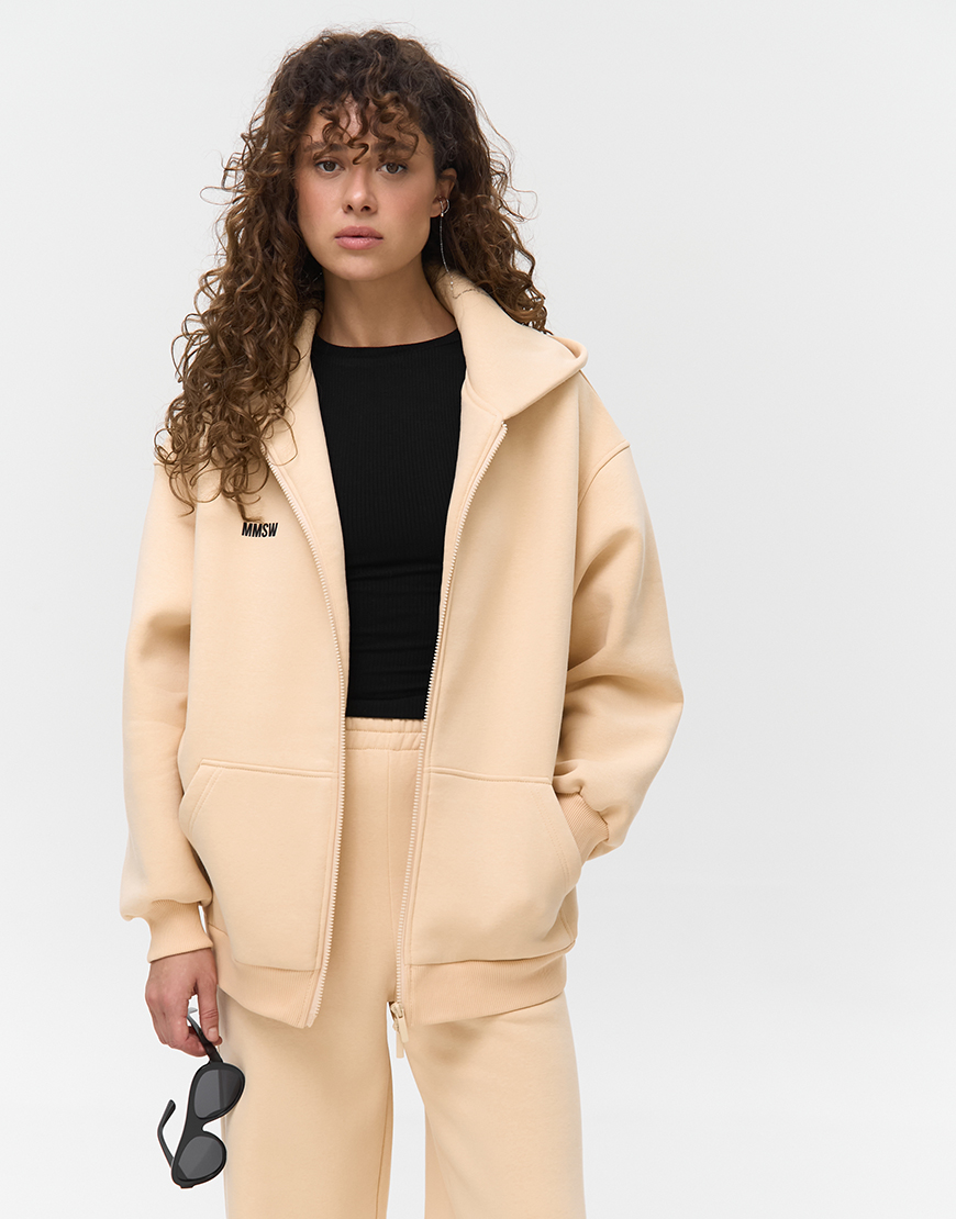 Худі на блискавці утеплене W26 світлий пісок