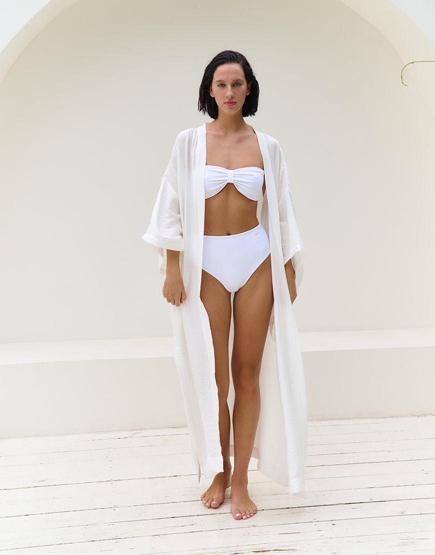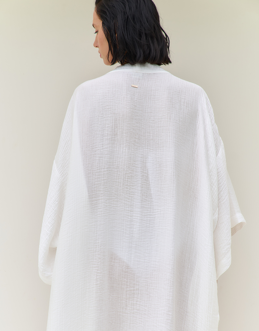 Бічні розрізи додають кімоно легкості та динаміки в русі. Носіть його як елемент повсякденного образу, пляжного луку або легкого верхнього шару.