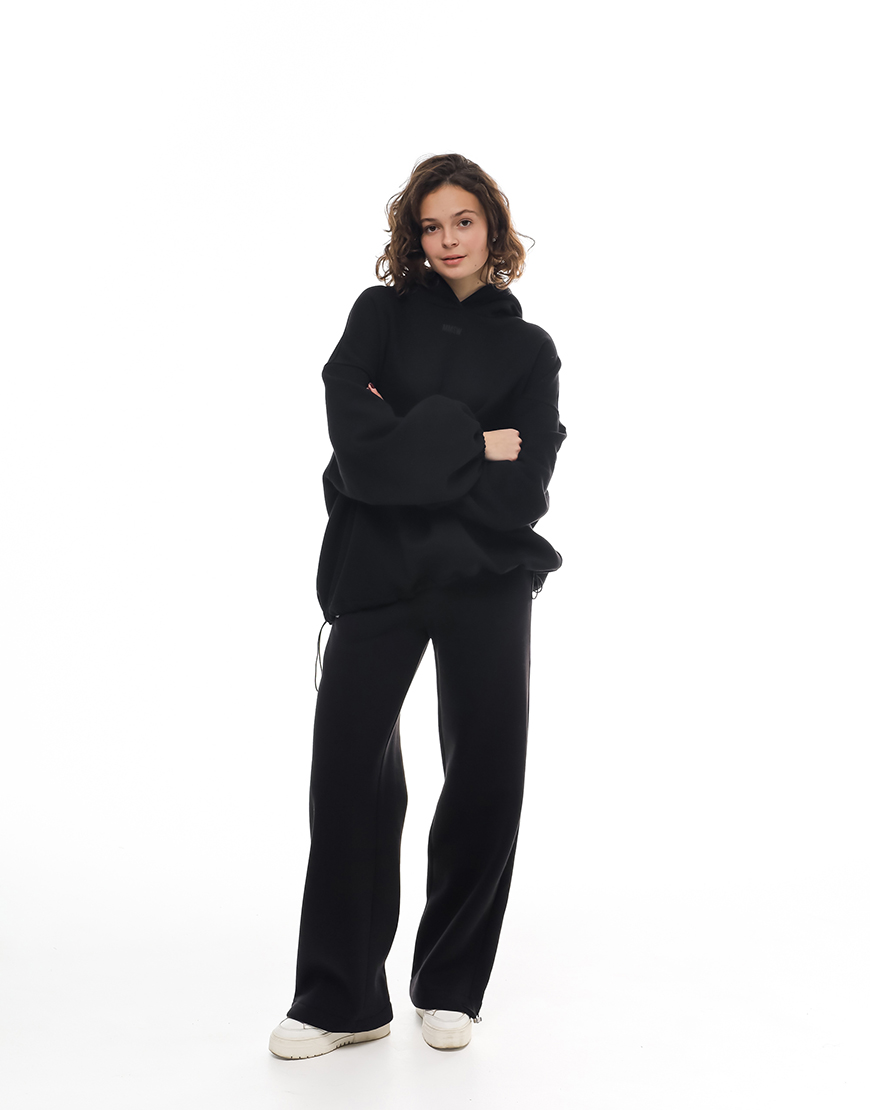 Доставка впродовж 2-5 робочих днівШтани з зимового трикотажу з начісом— чудовий вибір для зимового сезону .Низ штанів оснащений затяжками з металевим фіксатором, що дозволяє змінювати стиль і носити їх у різних варіаціях.Посадка середня, а пояс виконаний за цільнокрійною технологією, яка забезпечує плавний та акуратний перехід від стегон до талії, не додаючи зайвого об’єму.Штани мають бічні кишені з натуральною підкладкою, яка зберігає елегантність виробу і не робить його важчим.Фірмовий логотип з італійської каучукової плівки додає стильний та об’ємний акцент.