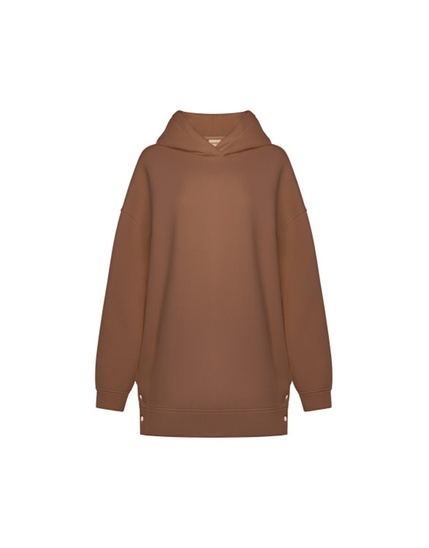 Худі подовжений з кнопками утеплений карамельний
