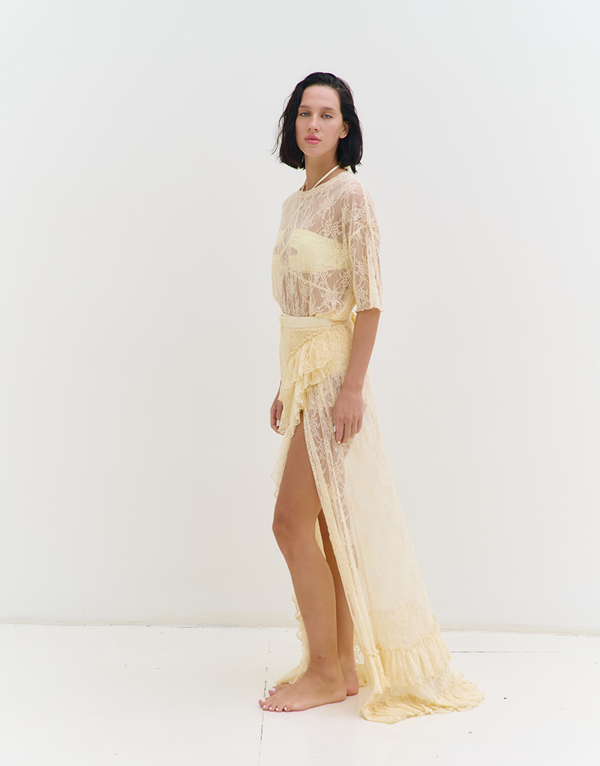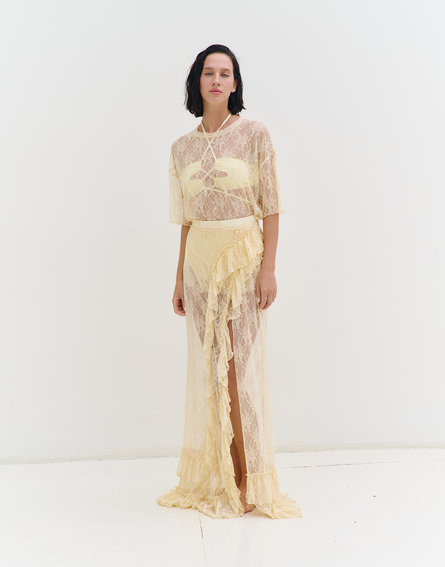 Доставка впродовж 2-5 робочих днівСпідниця Limoncello Lace — модель з гіпюрю з грайливим рюшем, яка зав’язується на запах, що дозволяє регулювати розмір для ідеальної посадки. Поєднання елегантності та комфорту створює стильний та жіночний образ.