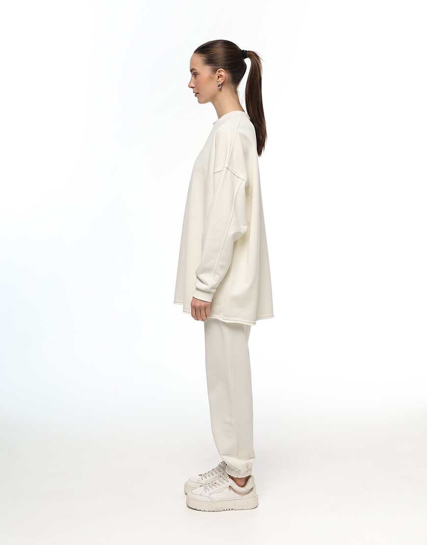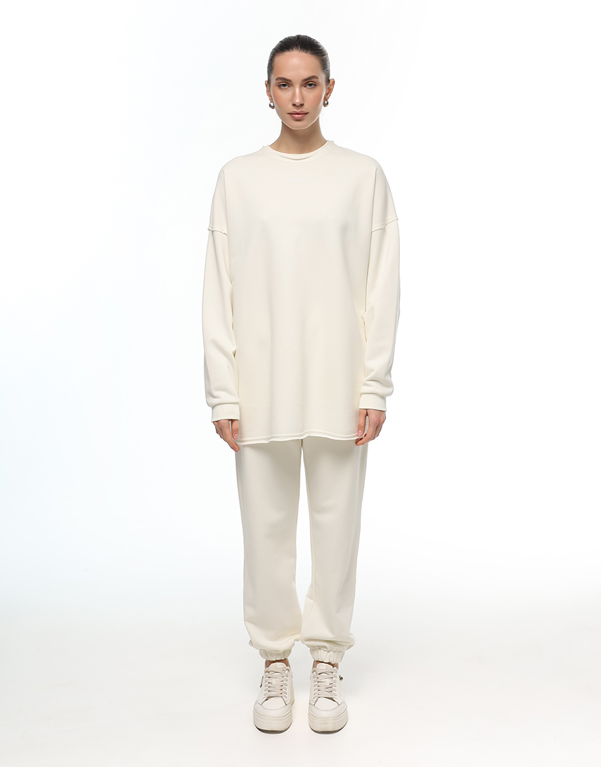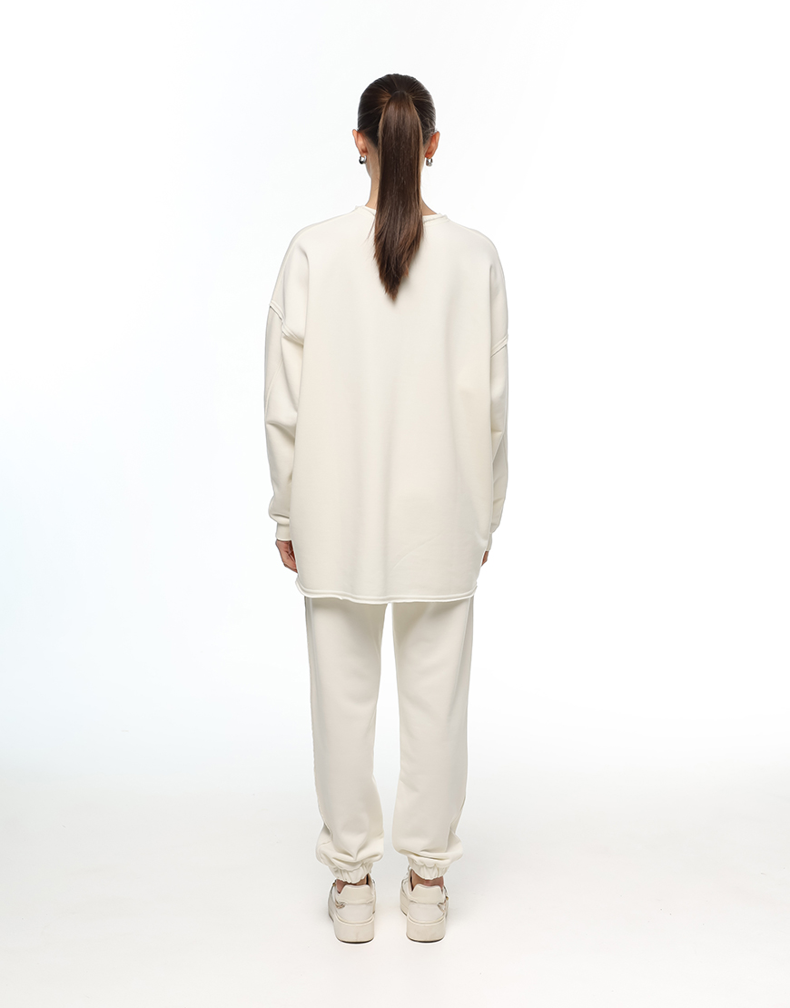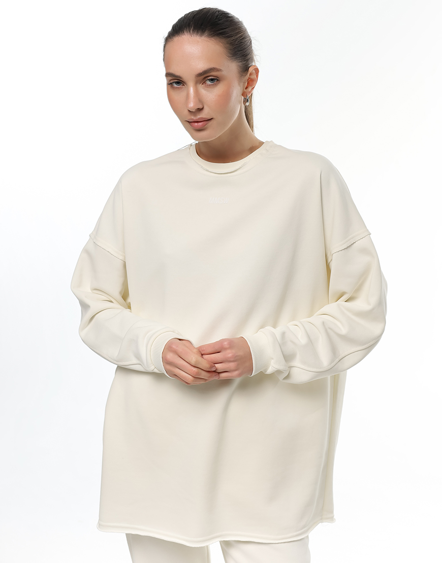 Світшот вільного крою з подовженою спинкою та трохи спущеним плечем. Модель прикриває сідниці та виготовлена з якісного трикотажу. Акценти на необроблених швах уздовж пройми й бокових частин додають характеру та унікальності. Легко поєднується з базовими речами для створення стильних повсякденних образів. Фірмовий логотип — з італійської каучукової плівки з об’ємним ефектом.