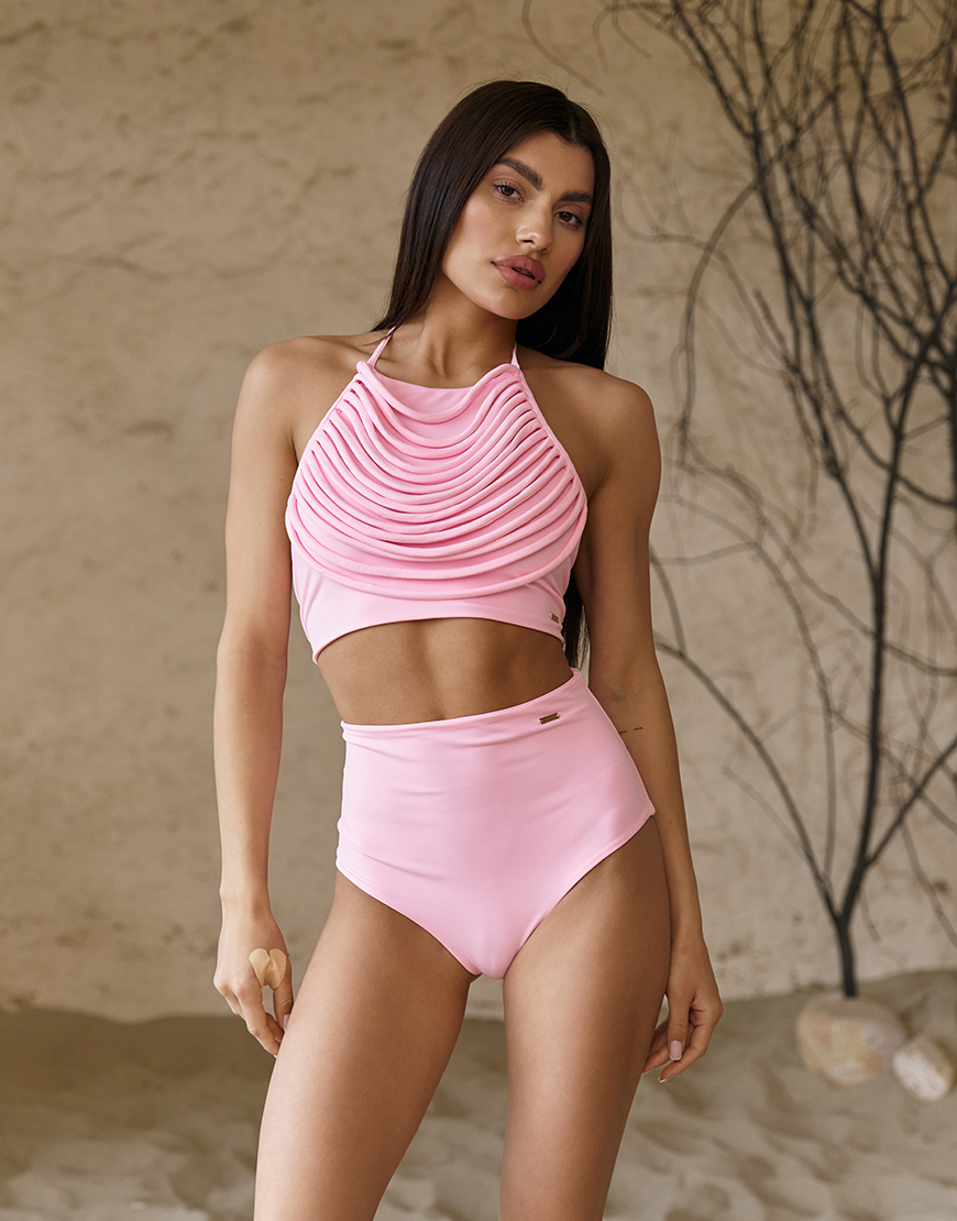 Топ Riviera — без кісточок, зі стильним драпіруванням, що забезпечує комфорт та підкреслює природні форми. Виконаний на зав’язках, легко регулюється під індивідуальні параметри, забезпечуючи ідеальну посадку. Універсальний розмір та лаконічний дизайн роблять цю модель базовим і водночас ефектним елементом літнього гардероба.
